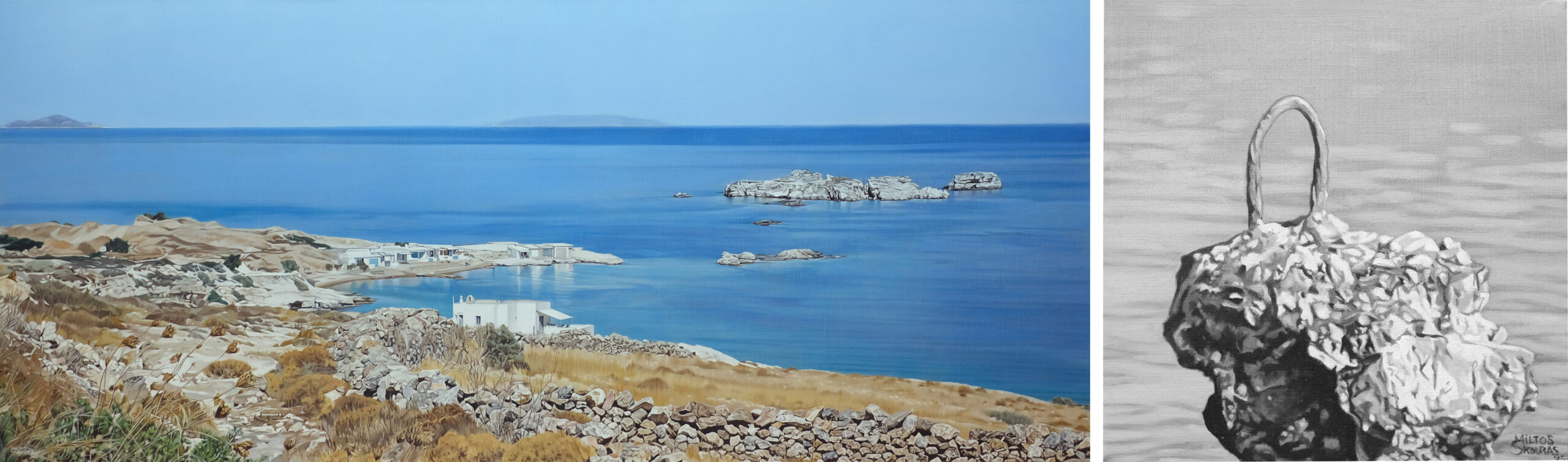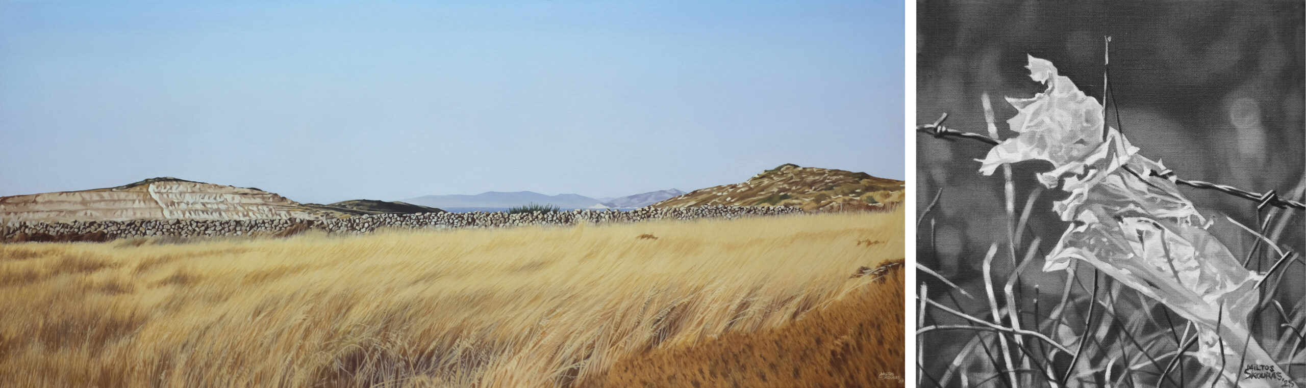 Ο Μίλτος Σκούρας με φωτογραφική ακρίβεια αποτυπώνει τη φύση με έργα μεγάλων και μικρών διαστάσεων που λειτουργούν και αυτόνομα και ως δίπολα.