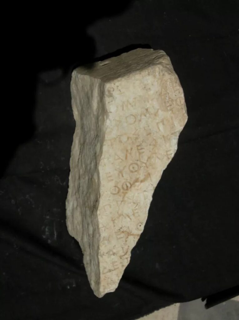 Επιγραφή που βρέθηκε εντοιχισμένη σε βυζαντινή φάση του αναλημματικού τοίχου της οδού Τριπόδων