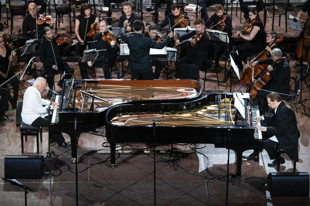 Στα δύο πιάνα τους και με τη συμμετοχή της Φιλαρμόνια Ορχήστρας Αθηνών υπό τη διεύθυνση του Αναστάσιου Συμεωνίδη ,και με ερμηνευτές τους καταξιωμένους τραγουδιστές: Σοφία Μανουσάκη, Θοδωρή Βουτσικάκη και Άντα Αθανασοπούλου, θα μας χαρίσουν ένα βράδυ γεμάτο συγκινήσεις.