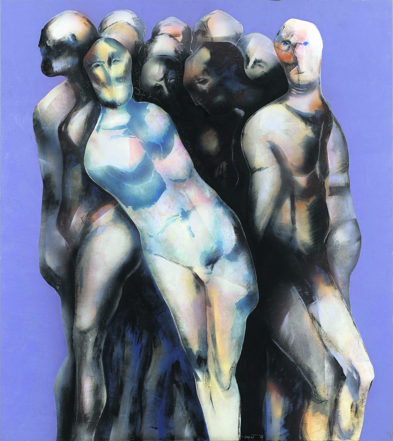 Είχα επισκεφθεί κάποια στιγμή το Αουσβιτς, όταν ακόμα ήταν εκεί σκελετοί. Επηρεασμένος βαθύτατα από αυτήν την επίσκεψη έκανα τα πρώτα θέματά μου που ήταν εμπνευσμένα από αυτήν τη συνταρακτική επίσκεψη. Πιστεύω ότι οι εικόνες αυτές μου έδωσαν το έναυσμα να προσπαθήσω δουλεύοντας να μεταφράσω με πνευματικό τρόπο στοιχεία άπιαστα, που έχουν να κάνουν με τον άνθρωπο. Υπήρξε περίοδος που τα έργα του Αουσβιτς είχαν μπει τόσο πολύ μέσα μου που κάθε φορά που έφτιαχνα ένα έργο εμπνευσμένο από αυτό το γύριζα ανάποδα, ώστε να μην το βλέπω, γιατί με πλήγωνε… Μερικές από αυτές τις γυναίκες του Αουσβιτς υπάρχουν και στην τωρινή έκθεση.
