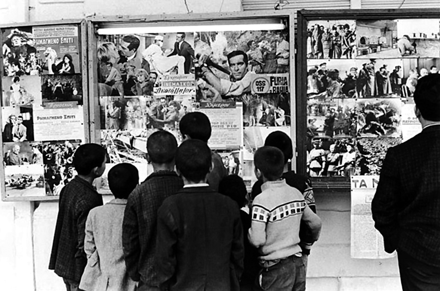 Οχι πως κάναμε κάτι παράνομο, όπως οι «Συμμορίες της Νέας Υόρκης». Οι δραστηριότητές μας ήταν ανώδυνες: ανεβοκατεβαίναμε τις κυλιόμενες σκάλες της Ομόνοιας, τις τεμπελόσκαλες όπως τις έλεγε ο πατέρας μου, καινούργιο «φρούτο» εκείνη την εποχή. Χαζεύαμε τις φωτογραφίες στις προθήκες των λαϊκών κινηματογράφων -του «Νέου Ροζικλαίρ» και του «Αλάσκα» της Πατησίων και των «Νέα Ελλάς» και «Αθηναϊκόν» της οδού Αθηνάς, που έπαιζαν δύο ταινίες, μία καουμπόικη και μία γκανγκστερική. Αλλά και των «σοβαρών», όπως το «Κοτοπούλη» στην Ομόνοια, το «Ιντεάλ», το «Τιτάνια» και το «Rex» στην Πανεπιστημίου, και τα «Αστυ» και «Εσπερος» ψηλά στη Σταδίου. Και ψηφίζαμε τους αγαπημένους μας ηθοποιούς. Στους άντρες πλειοψηφούσε ο Μάρλον Μπράντο και στις γυναίκες η Μέριλιν Μονρόε.