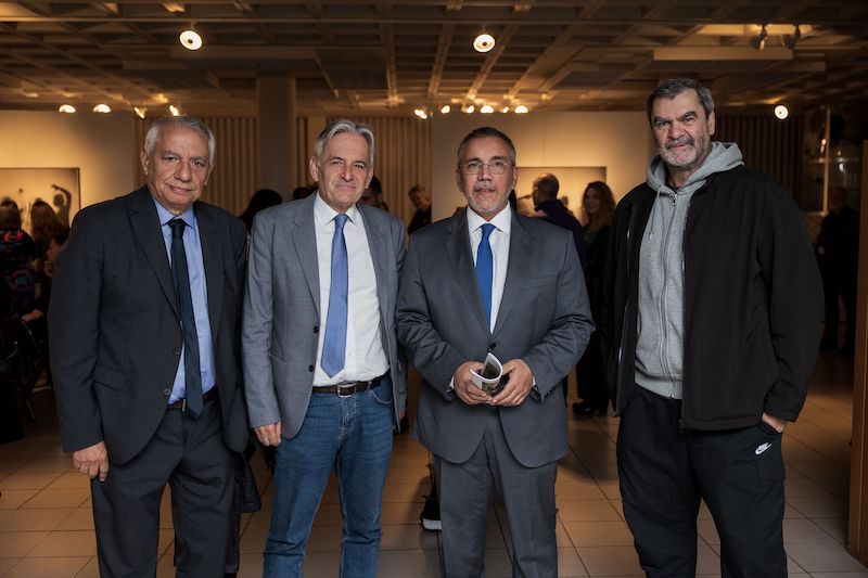 Ο Πρόεδρος της ένωσης Δημάρχων Αττικής κ. Παύλος Καμάρας, ο Αντιπεριφερειάρχης Μεταφορών και Επικοινωνιών της Περιφέρειας Αττικής κ. Βασίλης Γιαννακόπουλος, ο Γενικός Διευθυντής των Εκπαιδευτηρίων «Ελληνογερμανική Αγωγή» κ. Σταύρος Σάββας και ο Κώστας Παταβούκας στα εγκαίνια της έκθεσης ΣΚΙΕΣ του Νίκου Κεσσανλή στην Ελληνογερμανική Αγωγή