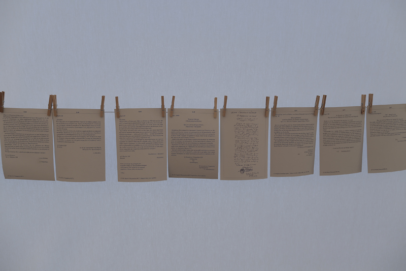 Μαζί με την επιμελήτρια της έκθεσης, μουσειολόγο-αρχιτέκτονα Ερατώ Κουτσουδάκη και τους συνεργάτες του, επέλεξαν να στήσουν την έκθεση στον ίδιο χώρο και χρόνο, όπου πέρσι τον Ιούνιο είχε δοθεί η παράσταση Ελεύθεροι Πολιορκημένοι της Ελένης Ευθυμίου, με Ελευσίνιους ερασιτέχνες ηθοποιούς. Άλλωστε η έκθεση φέρει τα ίχνη της επιτυχημένης εκείνης περφόρμανς.