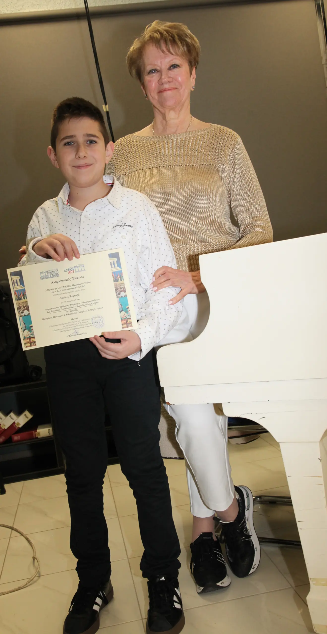 Αξίζει να σημειωθεί ότι ο νεαρός μουσικός είναι ήδη τρεις φορές βραβευμένος σε πανελλήνιους διαγωνισμούς, επιβεβαιώνοντας το ιδιαίτερο ταλέντο και τις προοπτικές του. Ιδιαίτερη αναφορά έγινε και στη δασκάλα του, την εκλεκτή πιανίστρια Irina Κωνσταντινίδη, η οποία έχει συμβάλει ουσιαστικά στη μέχρι σήμερα εξέλιξή του. Για την εντυπωσιακή αυτή εμφάνιση, ο Ιωάννης Μαρωνίτης, Πρόεδρος της Ομοσπονδίας Ομίλων και Συλλόγων για την UNESCO Ευρώπης και Β. Αμερικής, απένειμε στον νεαρό πιανίστα τιμητικό Έπαινο.