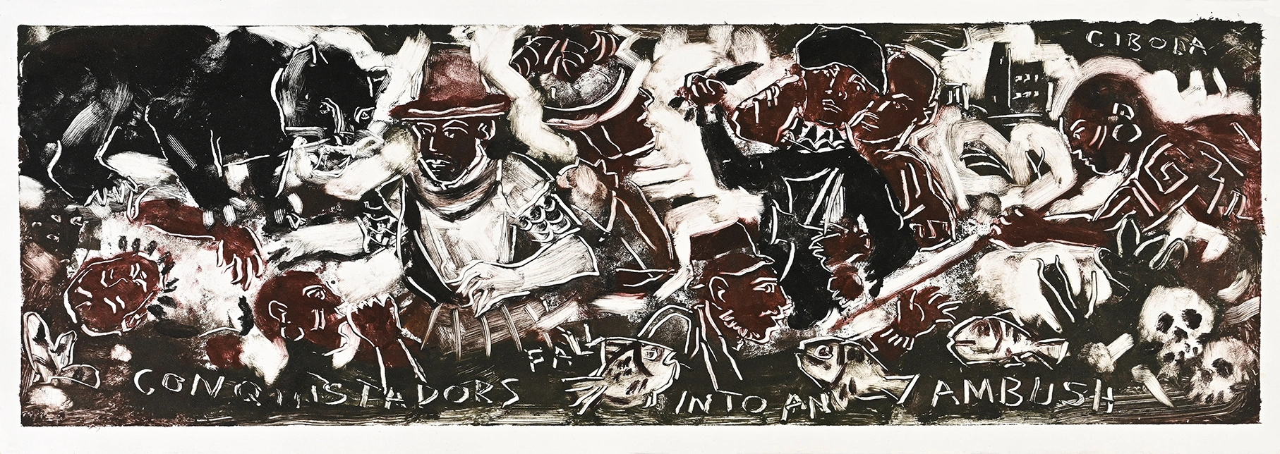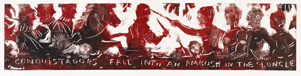 Τα 36 έργα που απαρτίζουν την έκθεση, δεν έχουν στόχο να υπηρετήσουν την ιστορία ή το ιστορικό genre της ζωγραφικής. Ο καλλιτέχνης αντλεί το υλικό του από τον μύθο που συνοδεύει την Εποχή των Ανακαλύψεων και πλάθει εικόνες μακριά και πέραν του νατουραλισμού, τόσο σε μορφολογικό όσο και σε επίπεδο θεματικού περιεχομένου.