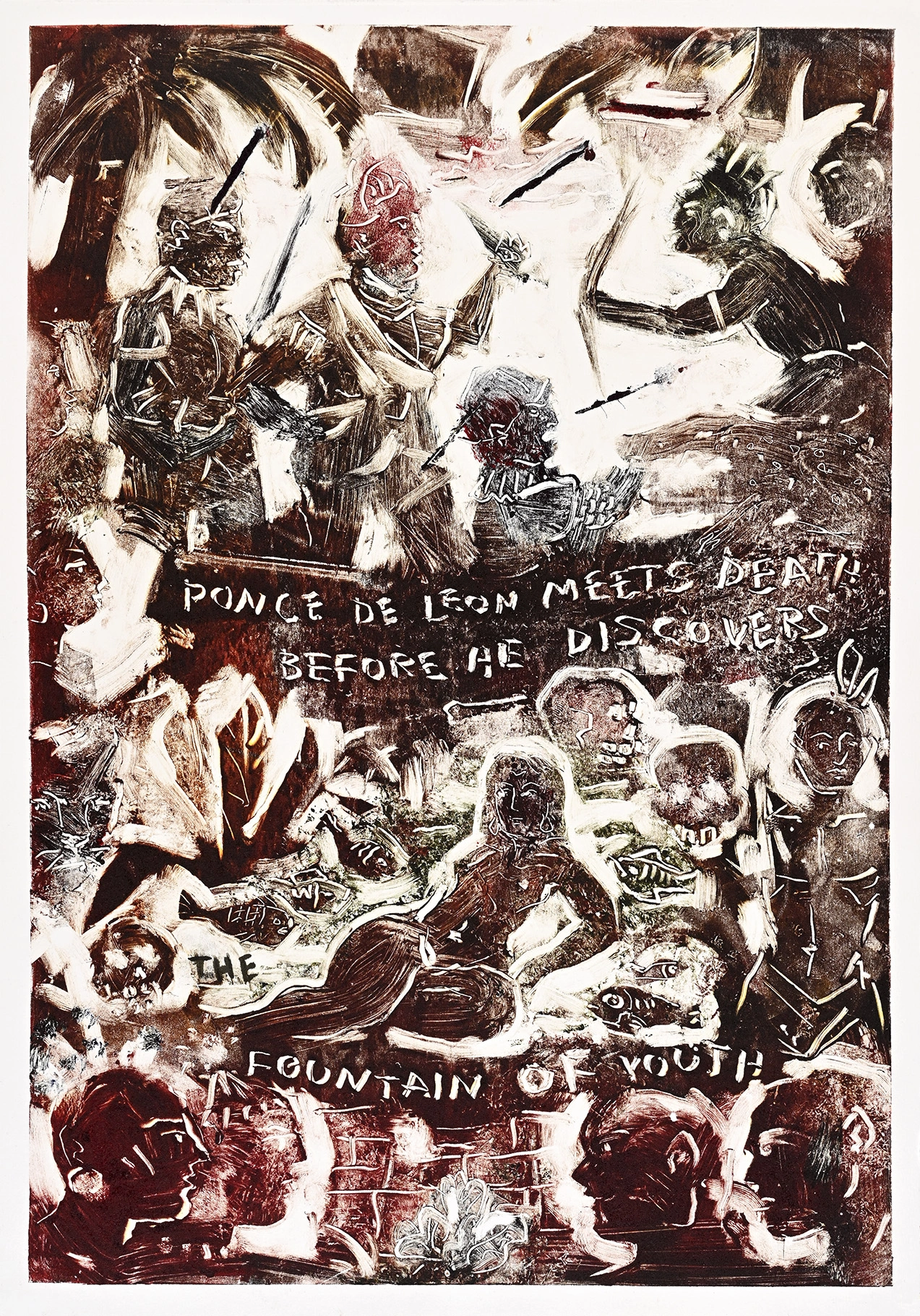 Τα έργα έχουν δημιουργηθεί με την μέθοδο της μονοτυπίας, τεχνική που χρονολογείται από τον 16ο αιώνα και που, σε συνδυασμό με τις ιστορίες που περιγράφουν, αποκτούν ένα ακόμη ιδιαίτερο ενδιαφέρον. Οι περιπέτειες των ηρώων αποτελούν αφορμή όχι μόνο για τις περιπέτειες της γραμμής και του χρώματος, αλλά και αφετηρία για στοχασμό πάνω σε έννοιες όπως αυτές της επιθυμίας, του φόβου, της σύγκρουσης ή της πλάνης.