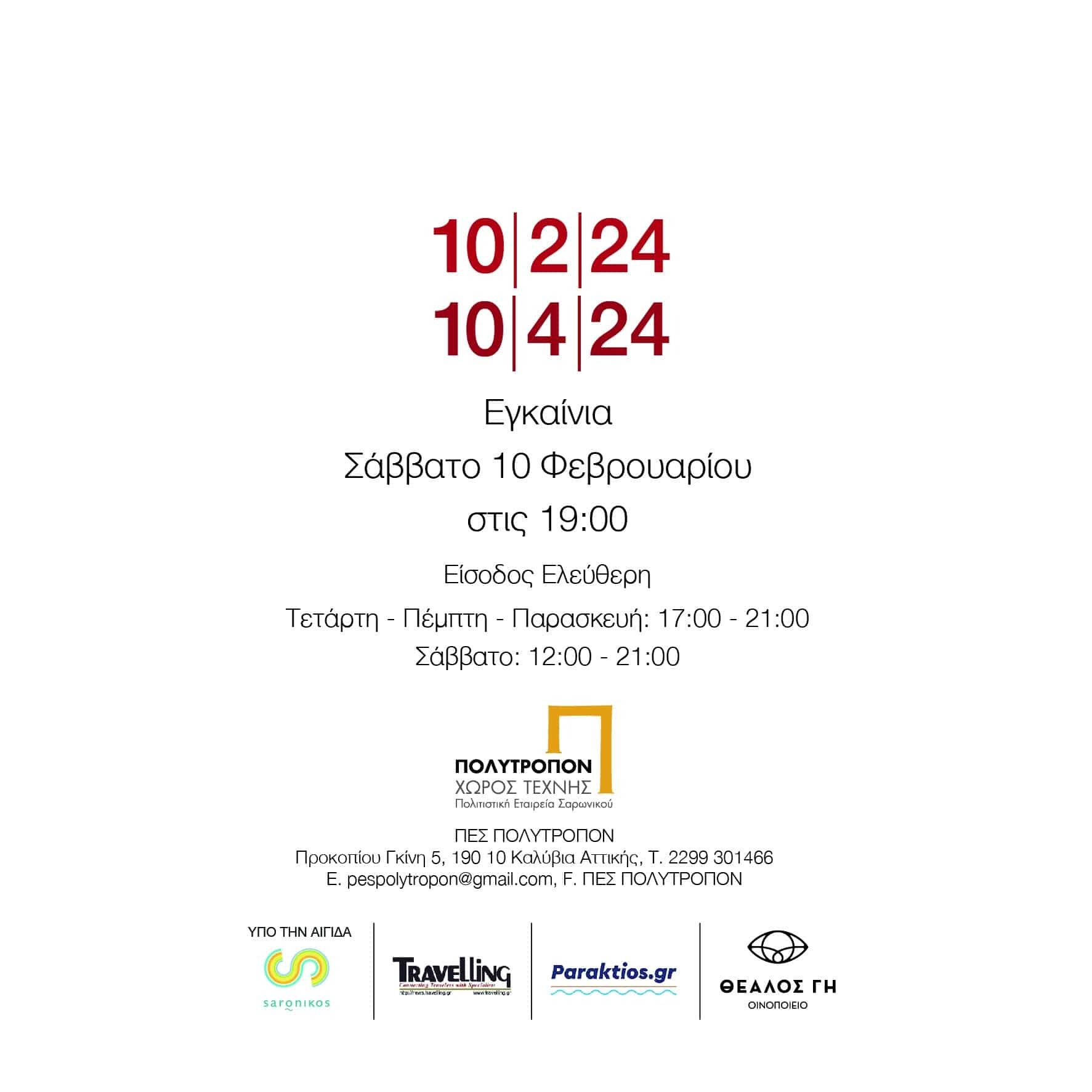 Εγκαίνια Έκθεσης το Σάββατο 10 Φεβρουαρίου 2024 στις 19:00