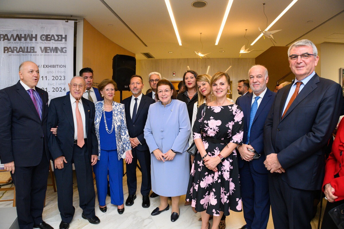 Η έκθεση «Παράλληλη θέαση» που εγκαινιάζεται σήμερα εδώ πέντε χρόνια μετά, αλλά και πέντε χρόνια πριν από τα 100χρονα γενέθλια της Τράπεζας, μαρτυρεί ακόμα μια πρόθεση για την αξιοποίηση της Συλλογής: η παρουσίαση των έργων της να προσφέρει στον γόνιμο διάλογο ανάμεσα στο εκάστοτε παρόν και στην αντίληψη που διαμορφώνουμε για το παρελθόν», σημείωσε ο κ. Στουρνάρας.