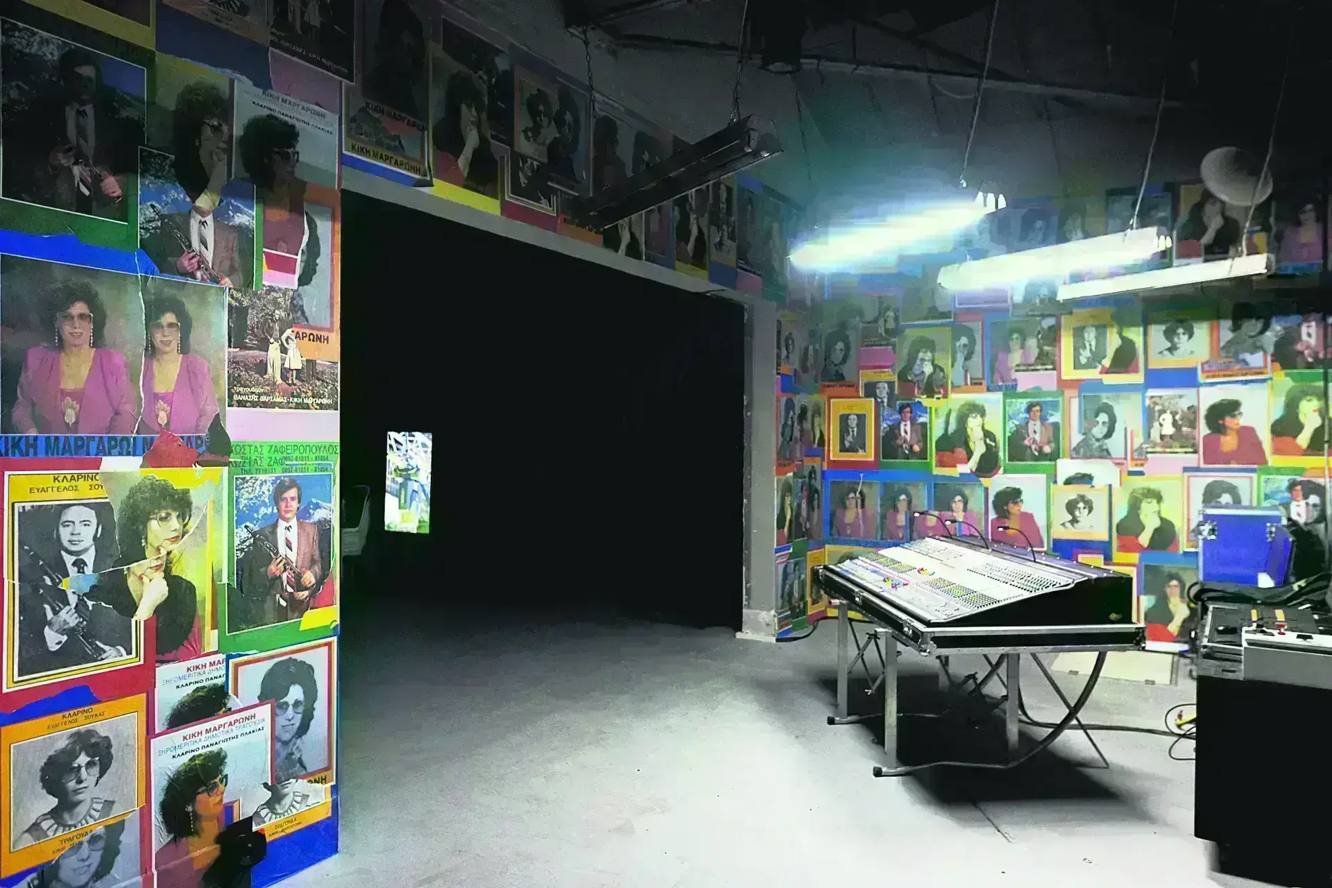 Ο ήχος μιας καμπάνας που υποδέχεται τους θεατές στο χώρο, ένα αγροτικό μηχάνημα άρδευσης στο κέντρο, βιντεοπροβολές, τηλεοράσεις, led οθόνες, ντουντούκες, μια κονσόλα ήχου, λευκές πλαστικές καρέκλες, αφίσες μιας σπουδαίας τραγουδίστριας πανηγυριών, μαρτυρίες για το πανηγύρι τυπωμένες σε τοίχο. Αυτά αντικρίζει ο επισκέπτης στο Ελληνικό Περίπτερο, που πλημμυρίζει από ήχους κλαρίνων, εξατμίσεων αγροτικών αυτοκινήτων, μοτοσικλετών που μαρσάρουν, τραγουδιών πανηγυριών και ηλεκτρονικής μουσικής.