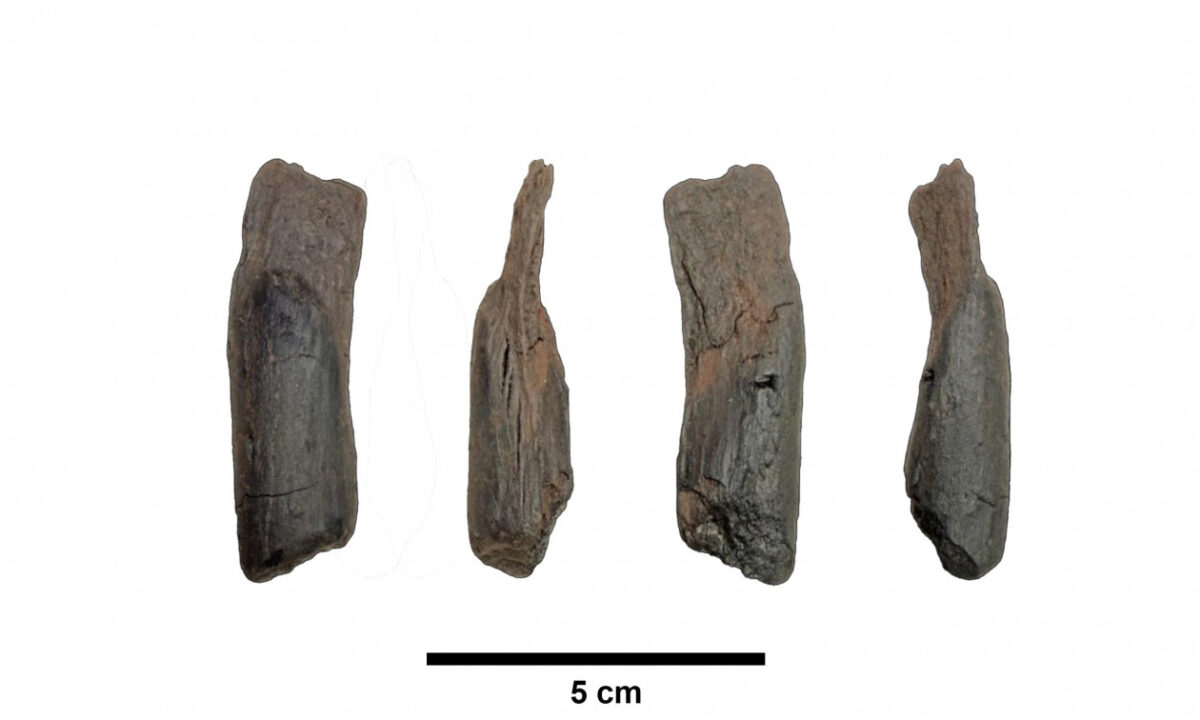 Ένα επεξεργασμένο ραβδί από σκλήθρο, πιθανό εργαλείο για σκάψιμο ή αφαίρεση φλοιού δέντρων.