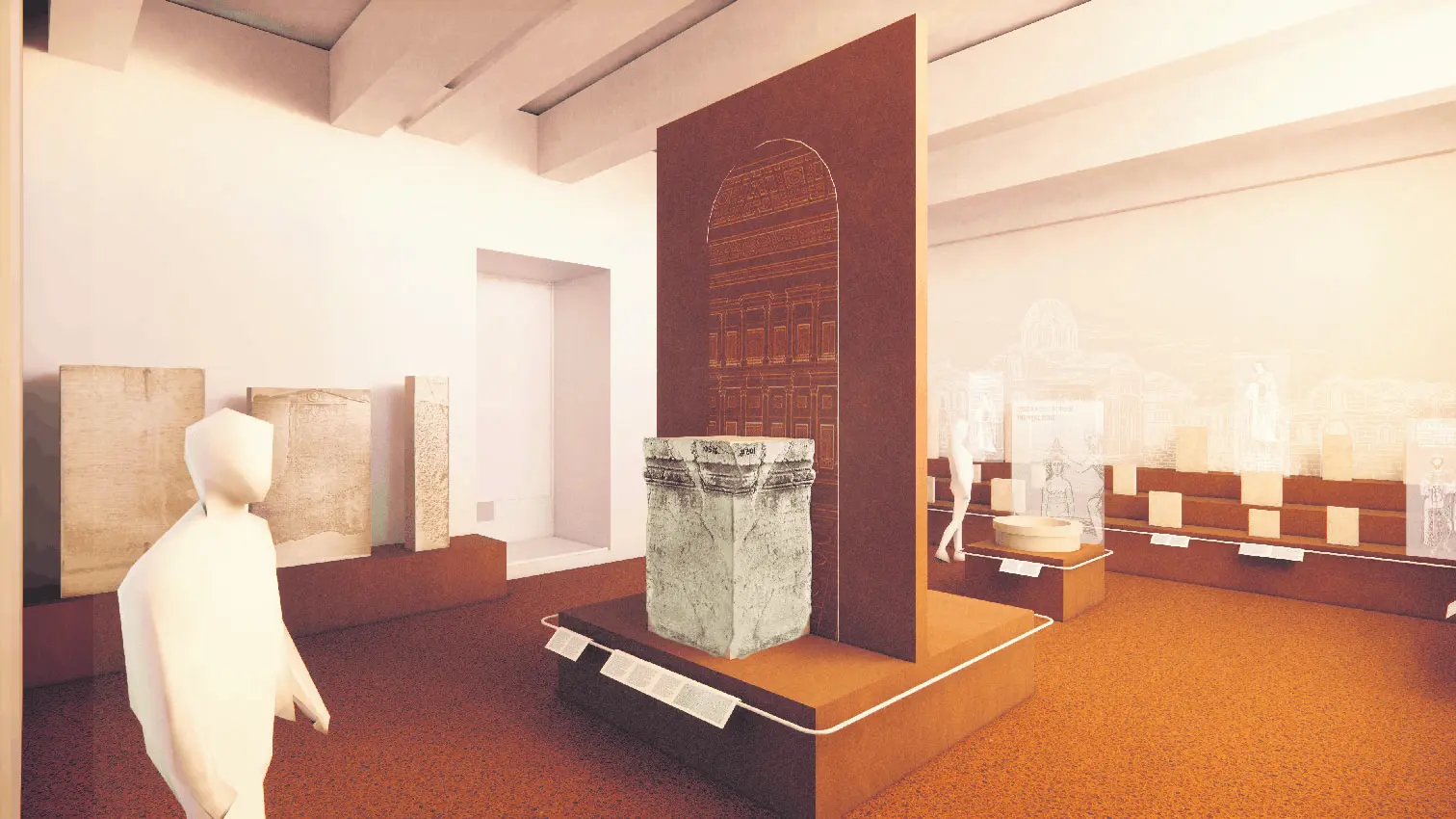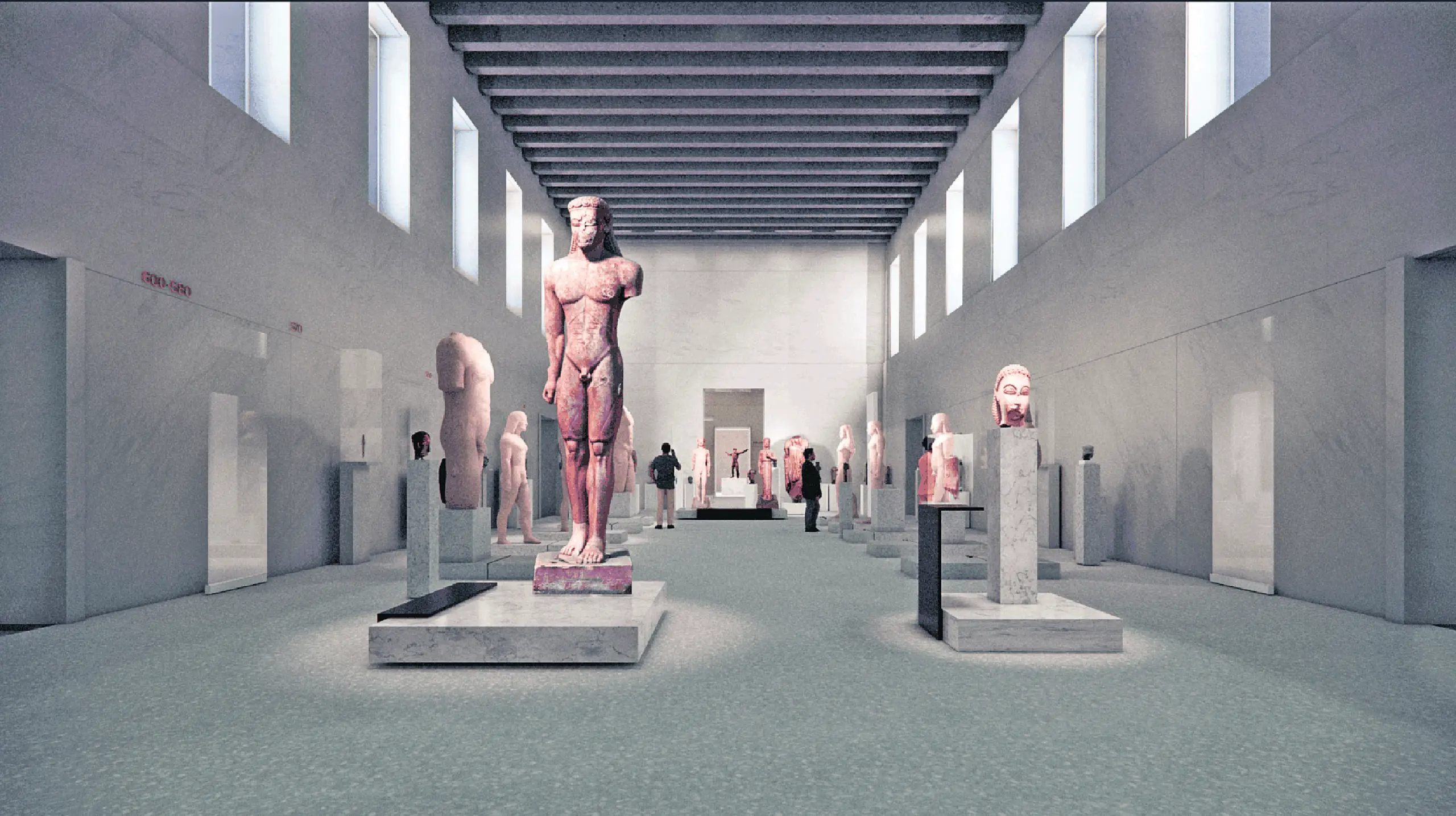Το κολοσσικό άγαλμα της Νίκης από τα Μέγαρα (περ. 300 μ.Χ.), ύψους 2,5 μέτρων, που θα παρουσιάζεται για πρώτη φορά στο κοινό ορίζει μέρος του «επιλόγου». Στο Επιγραφικό Μουσείο η αίθουσα «Από τα φοινικικά γράμματα στο αλφάβητο» και η ενότητα «Μετά την κρίση του 3ου αιώνα μ.Χ.» αναδεικνύουν επίσης κομβικές στιγμές της νέας εκθεσιακής αφήγησης. Πρόκειται για τέσσερις φωτορεαλιστικές απεικονίσεις από τη μουσειογραφική προμελέτη των εκθέσεων του Εθνικού Αρχαιολογικού Μουσείου και του Επιγραφικού Μουσείου, για την οποία γνωμοδότησε ομόφωνα θετικά το Συμβούλιο Μουσείων τη Μ. Δευτέρα.