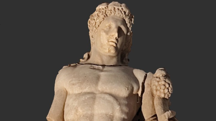 Τον διάκοσμό του συμπλήρωνε εντυπωσιακό άγαλμα των ρωμαϊκών χρόνων (2ος αιώνας μΧ). Το άγαλμα, του οποίου το μέγεθος είναι μεγαλύτερο του φυσικού, εικονίζει τον Ηρακλή αγένειο με νεανικό σώμα. Το ρόπαλο, που έχει βρεθεί σε θραύσματα και η λεοντή που κρέμεται από το αριστερό προτεταμένο χέρι πιστοποιούν την ταυτότητα του ήρωα. Επάνω στους βοστρύχους της κόμης φέρει στεφάνι από φύλλα αμπέλου το οποίο συγκρατεί στο πίσω μέρος ταινία, τα άκρα της οποίας καταλήγουν στους ώμους.