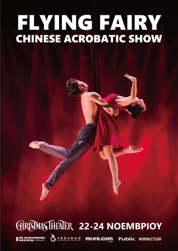 Το «Flying Fairy Chinese Acrobatic Show» παρουσιάζεται από τον παγκοσμίως γνωστό Ακροβατικό Θίασο του Γκουανγκζού και φέρνει μια μοναδική σύνθεση Κινέζικης ακροβατικής τέχνης και κλασικού δυτικού χορού, με αποκορύφωμα την εντυπωσιακή παράσταση «Μπαλέτο στους Ώμους». Οι Αθηναίοι θα έχουν μια σπάνια ευκαιρία να απολαύσουν την κορυφή της σύγχρονης Κινέζικης ακροβατικής τέχνης.