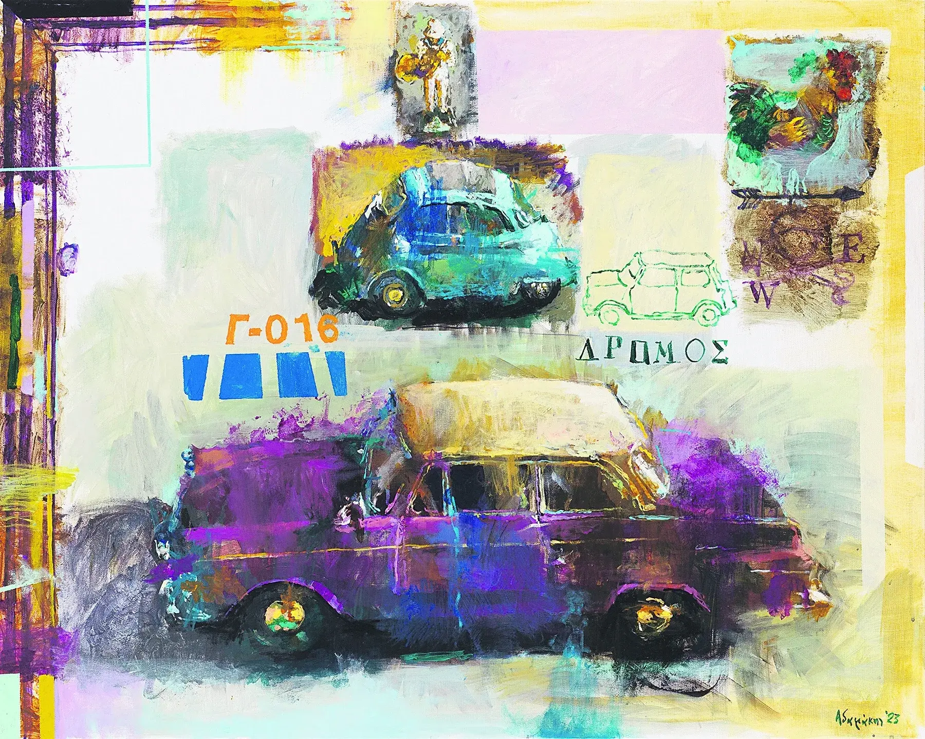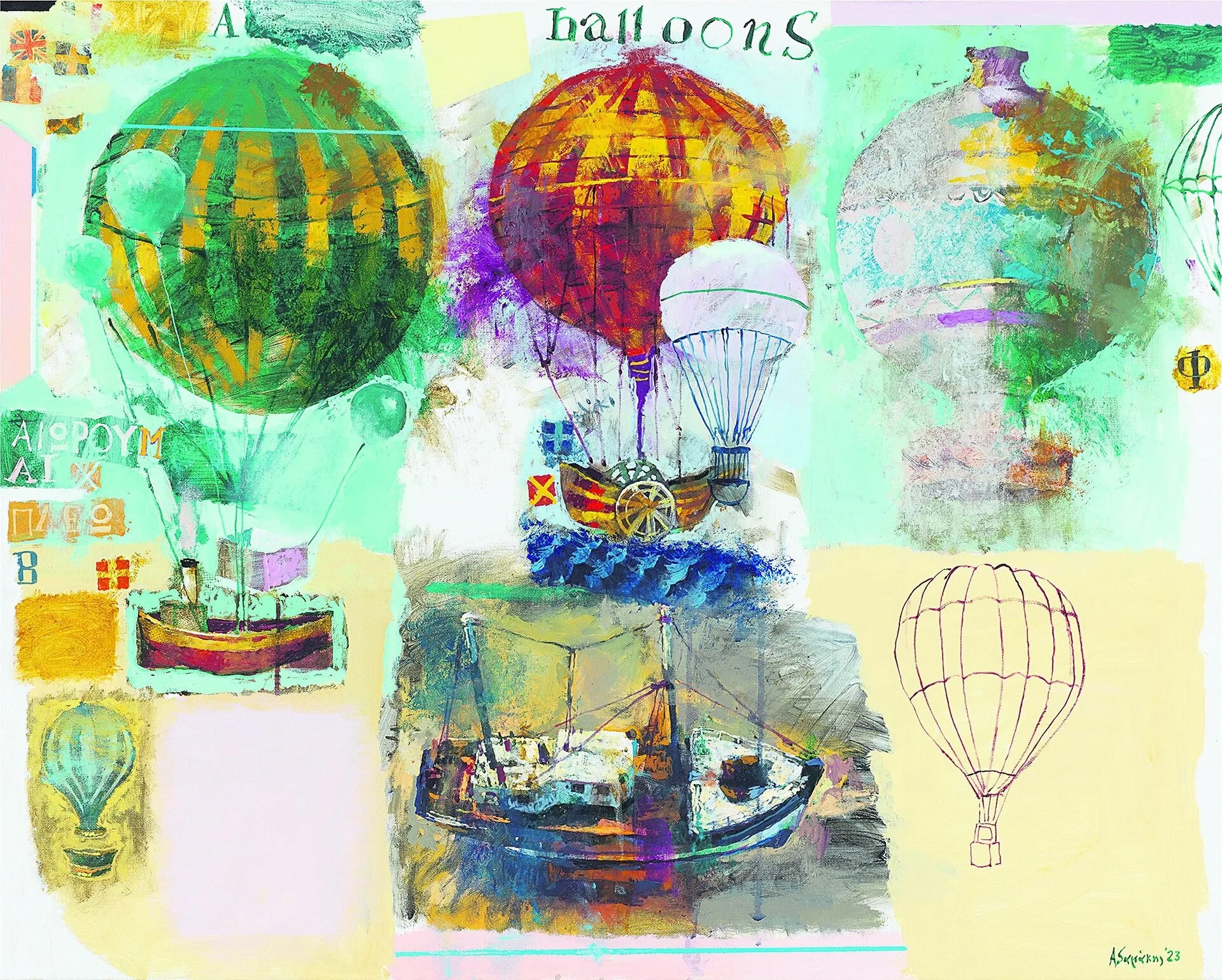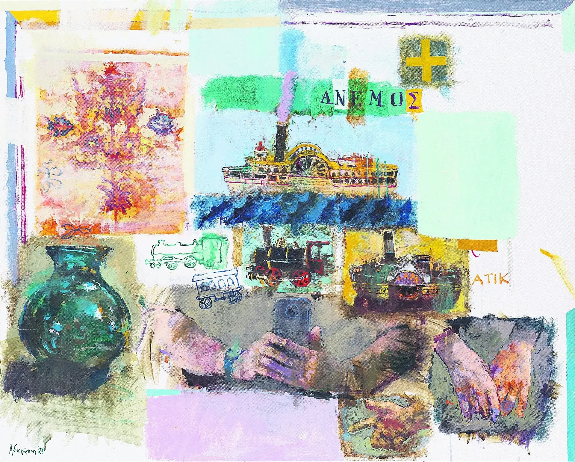 «Το ταξίδι με απασχολούσε πάντα στη δουλειά μου, τόσο το πραγματικό όσο και τα ταξίδια μνήμης στα χρόνια τα παιδικά και εφηβικά. Γι’ αυτό και πολλές φορές δουλεύω σειρές έργων με παιχνίδια, που όμως παίρνουν άλλες διαστάσεις όταν μεταφέρονται στον καμβά. Μετουσιώνονται και αποκτούν άλλη υπόσταση», λέει ο ίδιος ο ζωγράφος στον «Ε.Τ.» και συνεχίζει μιλώντας μας πιο συγκεκριμένα για τη νέα του έκθεση και τον τίτλο της: