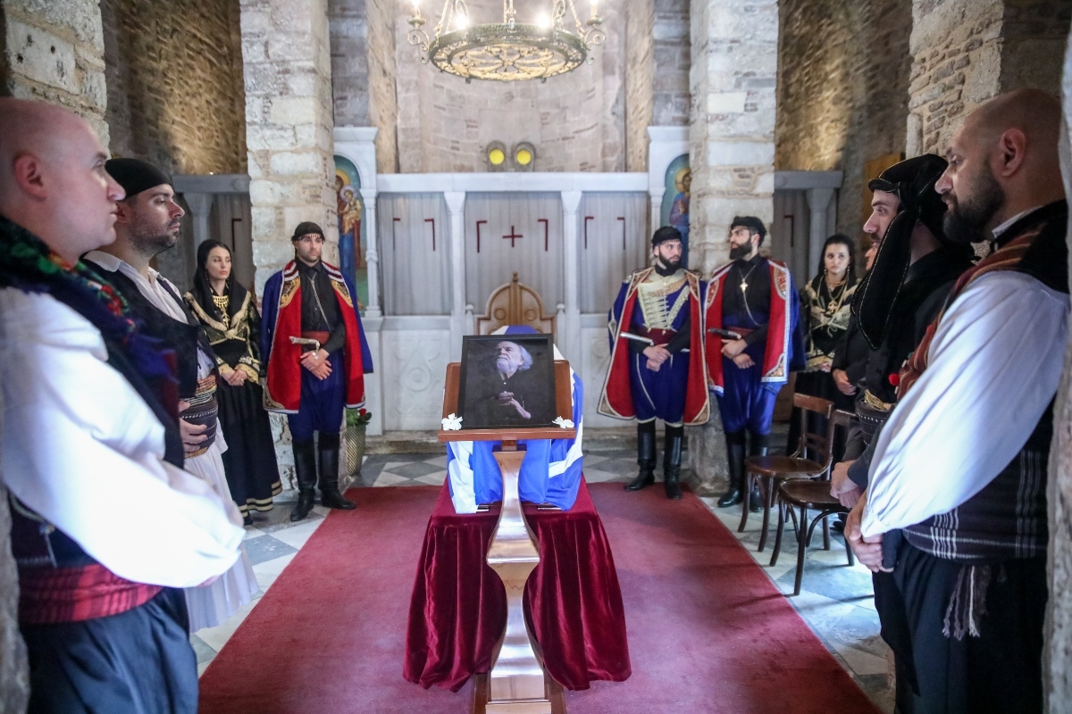 Το φέρετρο με τη σορό του σπουδαίου μουσικοσυνθέτη ήταν καλυμμένο με την ελληνική σημαία, ενώ λίγη ώρα αργότερα στο σημείο έφτασαν και βρακοφόροι, από την ιδιαίτερη πατρίδα του την Κρήτη οι οποίοι απέδωσαν τιμές.