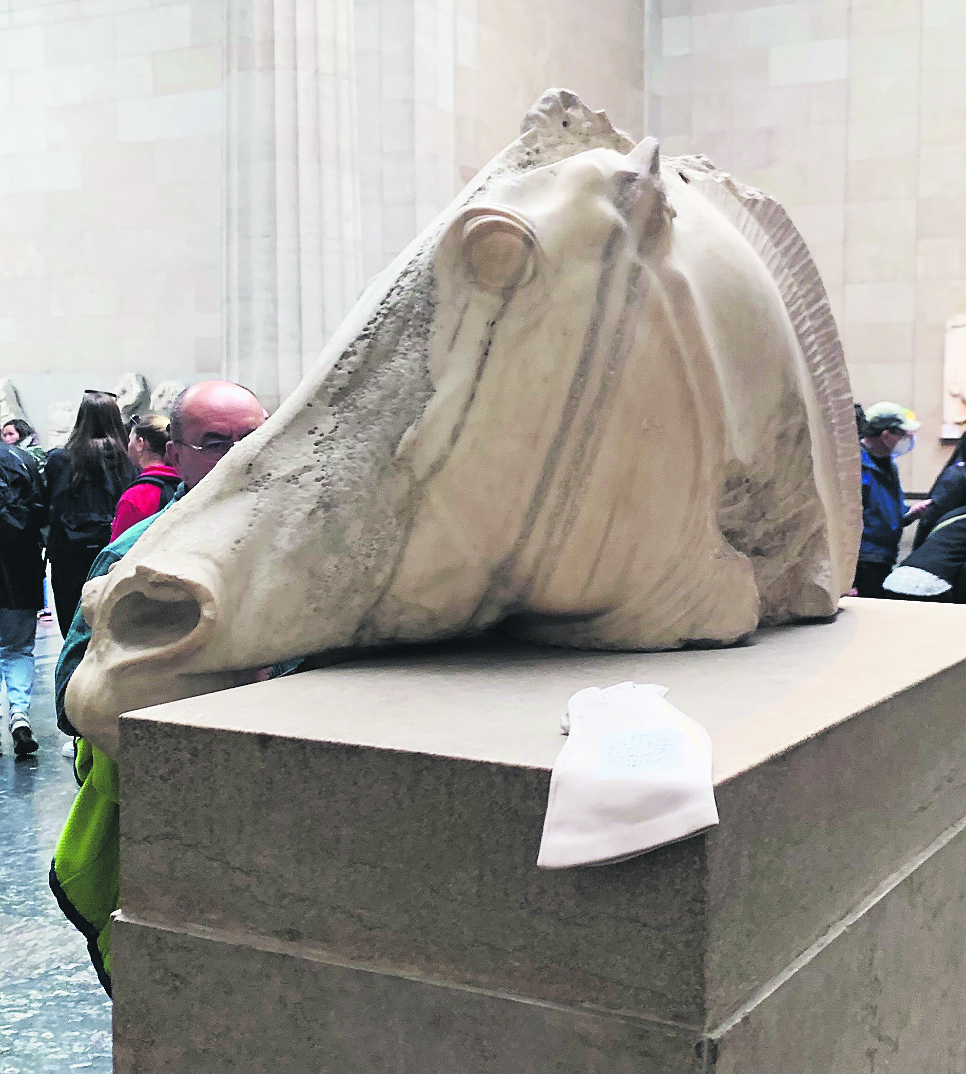 Στελέχη του IDA τοποθέτησαν -όπως αναφέρει και το έντυπο δημοσίευμα της «Telegraph»- το μικροσκοπικό κεφάλι αλόγου ανάμεσα στη συλλογή γλυπτών του Παρθενώνα. Σύμφωνα με τον κ. Μίτσελ το Βρετανικό Μουσείο ενημερώθηκε για τη δράση. Ενας εκπρόσωπος του ΒM δήλωσε πως «γνωρίζουμε ότι το IDΑ ισχυρίζεται ότι έχει εγκαταστήσει ένα μικρό αντίγραφο του Αλόγου της Σελήνης κάπου στο Μουσείο. Σε αντίθεση με τη μινιατούρα της οποίας η τρέχουσα τοποθεσία είναι άγνωστη, το πραγματικό γλυπτό είναι εύκολο να βρεθεί στο Βρετανικό Μουσείο για να το απολαύσουν οι επισκέπτες».