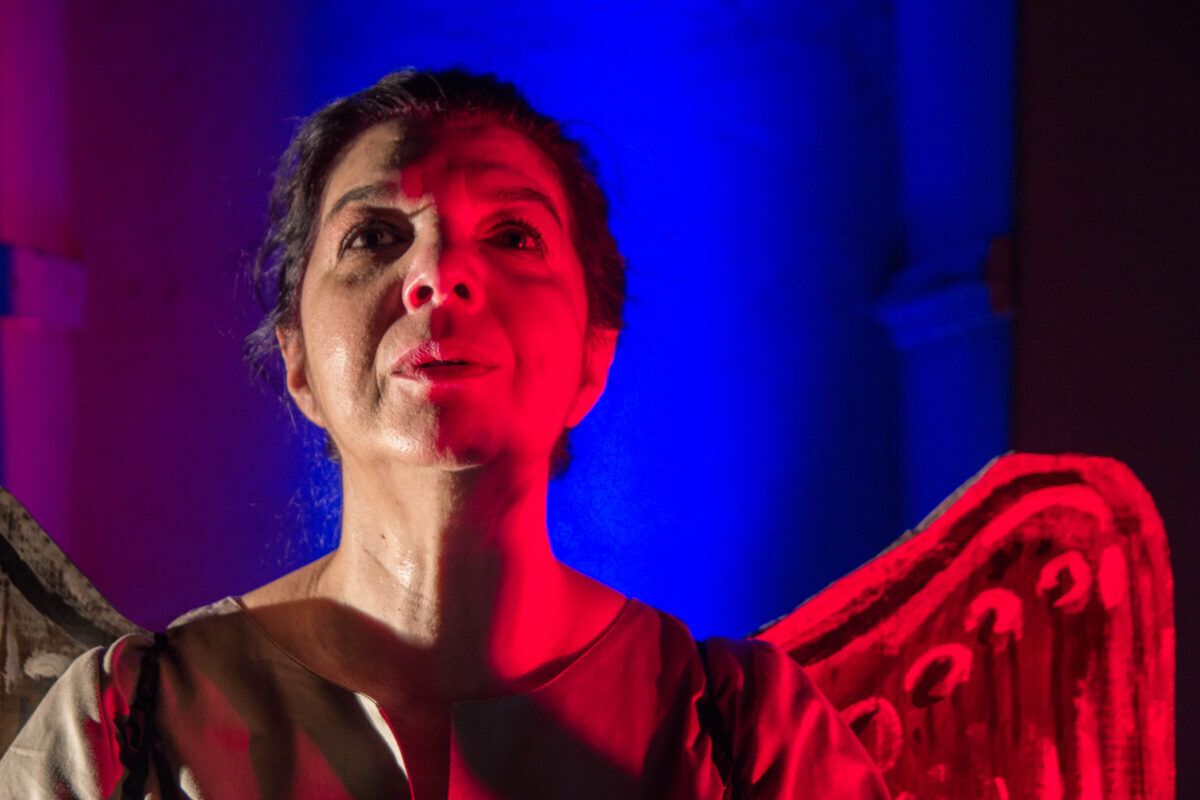 Πρόκειται για έναν συνταρακτικό μονόλογο που ερμηνεύει καταλυτικά η ηθοποιός Κατερίνα Γκατζόγια, η οποία ταυτίζεται απόλυτα με τον χαρακτήρα, σωματοποιεί τον λόγο, γίνεται αληθινή ιέρεια του κειμένου του Σολωμού και των πολυσήμαντων νοημάτων του, που τα κοινωνεί στο κοινό.