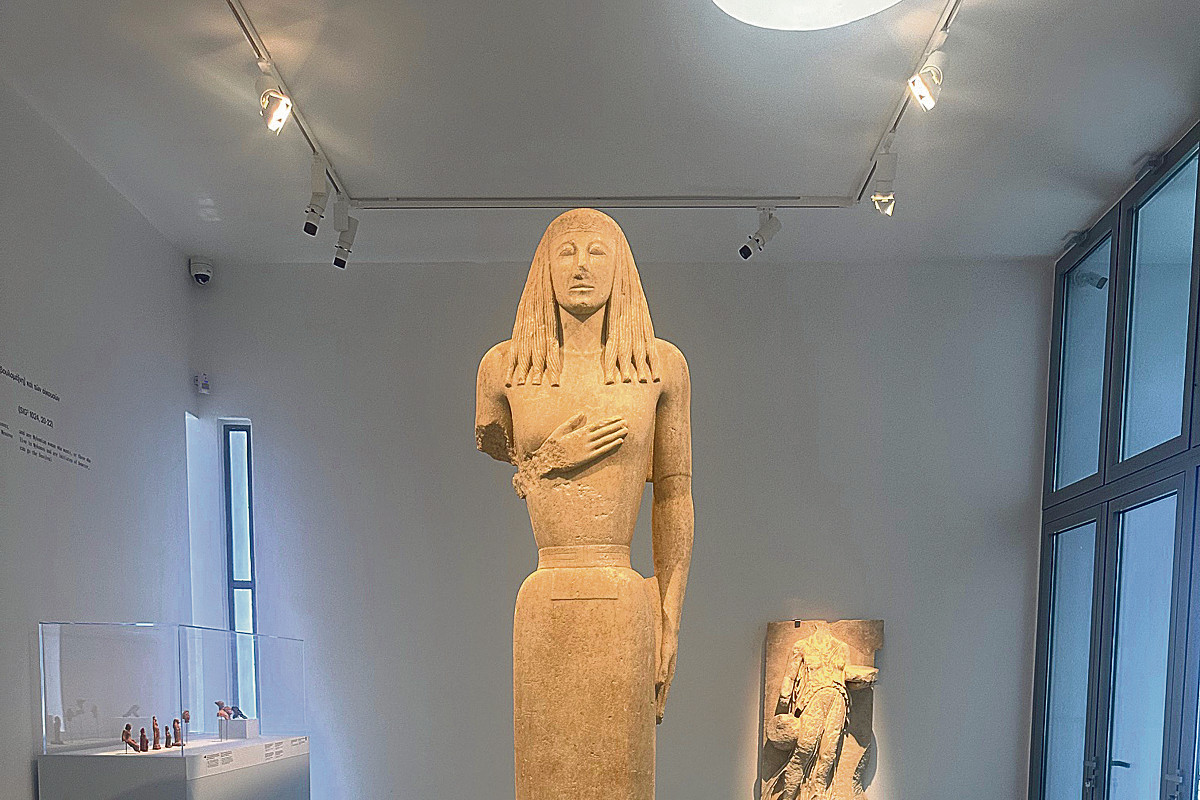 Για πρώτη φορά από την εύρεσή της, το 2000, το αρχαϊκό άγαλμα βρίσκει τη θέση του, στηριγμένο πάνω σε μια ειδικά σχεδιασμένη αντισεισμική βάση, αποτέλεσμα συνεργασίας του ΥΠΠΟ με το Εθνικό Μετσόβιο Πολυτεχνείο. Ελεύθερη πλέον από τα σιδερένια δεσμά που την περιβάλλανε για λόγους στήριξης, επιτρέπει στους επισκέπτες να θαυμάσουν τη λυγερόκορμη γυναικεία μορφή της, όπως φιλοτεχνήθηκε πριν από 2.700 χρόνια.