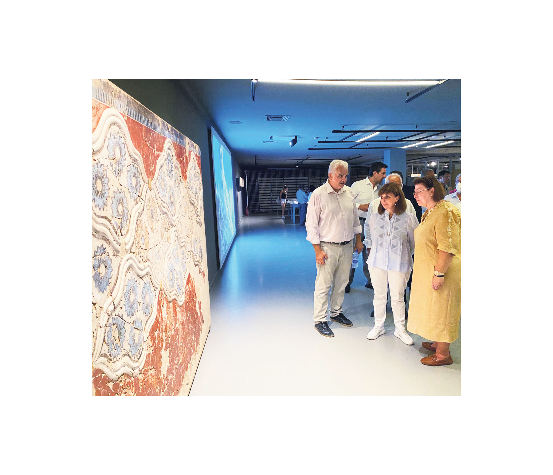 Η κυρία Μενδώνη έκανε μια μικρή αναδρομή στο παρελθόν, λέγοντας ότι «τον Ιούλιο του 2020 ήρθαμε εδώ με τον πρωθυπουργό, Κυριάκο Μητσοτάκη, ο οποίος υποσχέθηκε ότι την επόμενη χρονιά θα ήταν εκτεθειμένες οι τοιχογραφίες στο Μουσείο Προϊστορικής Θήρας, οι οποίες ήταν και αυτές “φυλακισμένες” στις αποθήκες. Κάναμε αυτό που είπαμε. Πέρυσι αποδόθηκαν οι τοιχογραφίες του Ακρωτηρίου. Είπαμε τότε ότι το αρχαιολογικό μουσείο, το οποίο έπρεπε να ακολουθήσει σύγχρονες μουσειακές προδιαγραφές, θα ανακαινιστεί πλήρως.