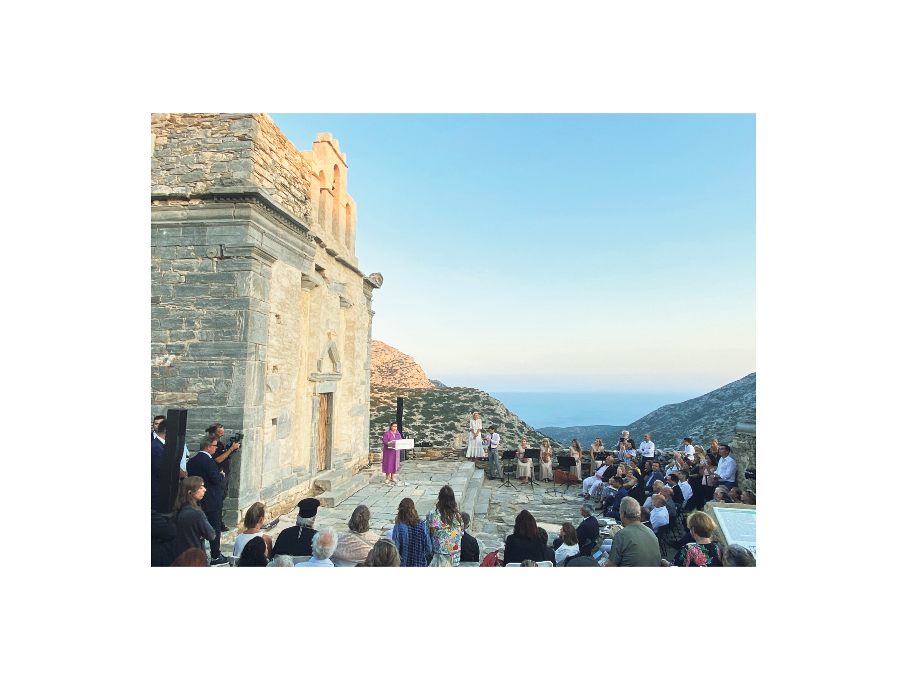 Παρούσα ήταν και η Πρόεδρος της Δημοκρατίας, Κατερίνα Σακελλαροπούλου, η οποία, όπως είπε στο χαιρετισμό της η υπουργός Πολιτισμού, Λίνα Μενδώνη, «από την αγάπη της στις Κυκλάδες και στον πολιτισμό παρέτεινε την παραμονή της και είναι μαζί μας αυτή την πολύ σημαντική μέρα».