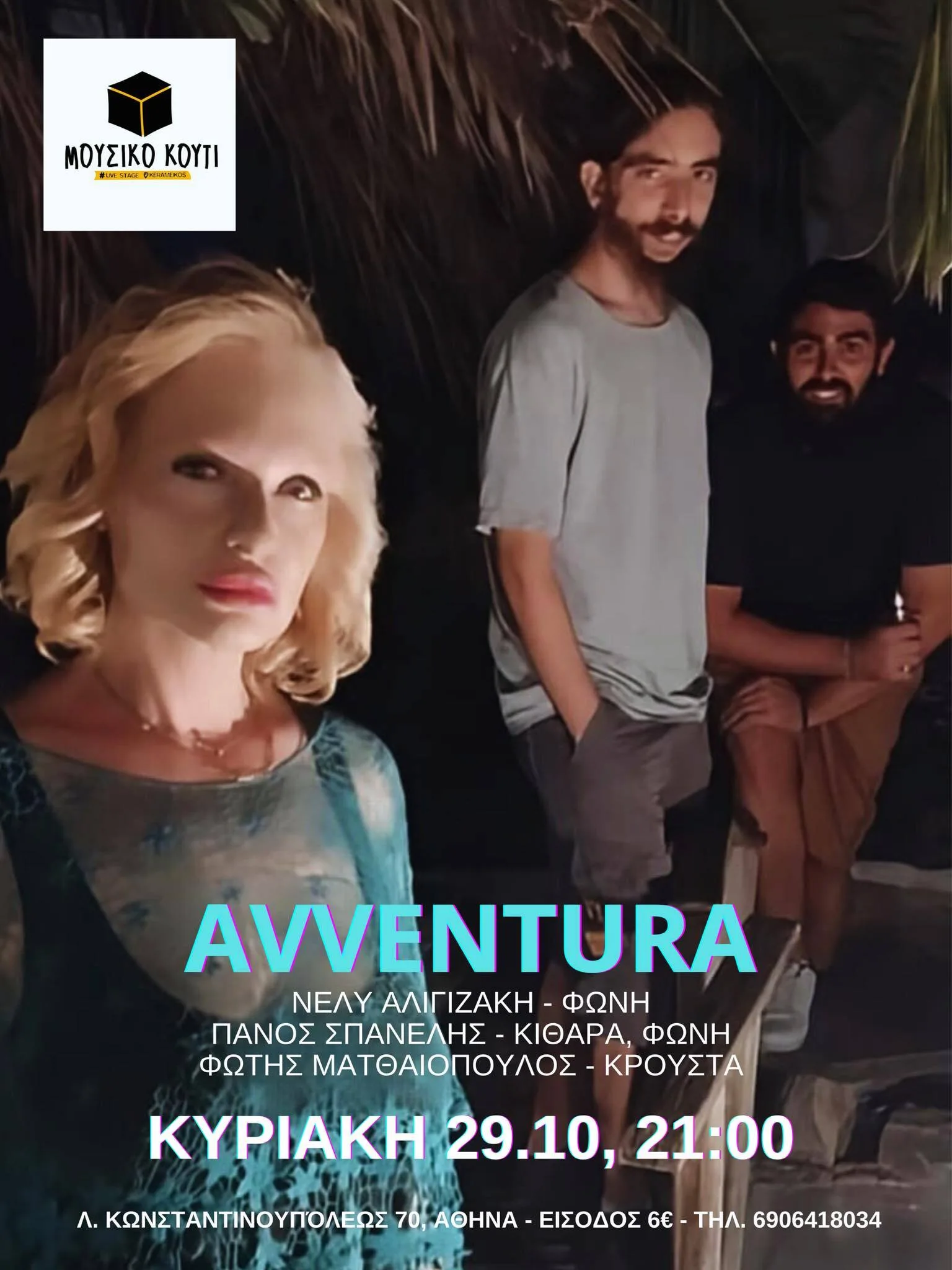 Μαζί με τους ταλαντούχους Πάνο Σπανέλη ( κιθάρα-φωνή) και Φώτη Ματθαιόπουλο ( κρουστά), θα παρουσιάσει την προσωπική της δουλειά που κυκλοφορεί από την εταιρία της ,FmRecords, αλλά και αγαπημένο ελληνικό και ξένο ρεπερτόριο από τη δεκαετία του ’70 μέχρι σήμερα ,σε ύφος έντεχνο ποπ και ροκ.