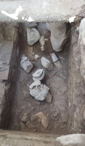 Όπως αναφέρει ανακοίνωση του ΥΠΠΟ, πρόκειται για θραύσματα γλυπτών, άνω και κάτω άκρων, τα οποία κατά πάσα πιθανότητα σχετίζονται με το άγαλμα του Ερμή που έχει ήδη ανασυρθεί, κορμός δεύτερου αγάλματος επίσης ανδρικής μορφής φυσικού μεγέθους, τοποθετημένος επί της δεξιάς πλευράς του, σπαράγματα ειδωλίου, καθώς και μεγάλος αριθμός λύχνων του 5ου αι. μ.Χ.