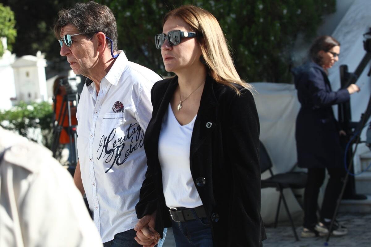 Η Μπέσσυ Μάλφα συνοδευόμενη από τον σύζυγός της, Γεράσιμο Σκιαδαρέση και τη μια της κόρη, την Όλγα παρευρέθηκε στο τελευταίο αντίο στην αδερφική της φίλη.