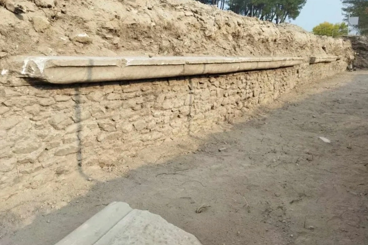 «Εξίσου ενδιαφέρον είναι και ο τοίχος που ορίζει τη βόρεια πλευρά της λεγόμενης Εγνατίας. Αποκαλύφθηκε σε αρκετό μήκος. Φέρει εσοχές σε μορφή κόγχης, οι οποίες πιθανόν κοσμούνταν με αγάλματα. Τμήμα παρόμοιου τοίχου είχε σκαφτεί από τη Γαλλική Αρχαιολογική Σχολή, τη δεκαετία του 1930, βόρεια της αρχαίας αγοράς, χωρίς ωστόσο να ερμηνευτεί. Αν η έρευνα, που σίγουρα αξίζει να συνεχιστεί, αποκαλύψει ότι πρόκειται για τη συνέχεια του ίδιου τοίχου, τότε μιλάμε για μια μνημειακή διαμόρφωση που χώριζε τα δύο επίπεδα της πόλης», καταλήγει η Έφορος Αρχαιοτήτων Καβάλας – Θάσου.