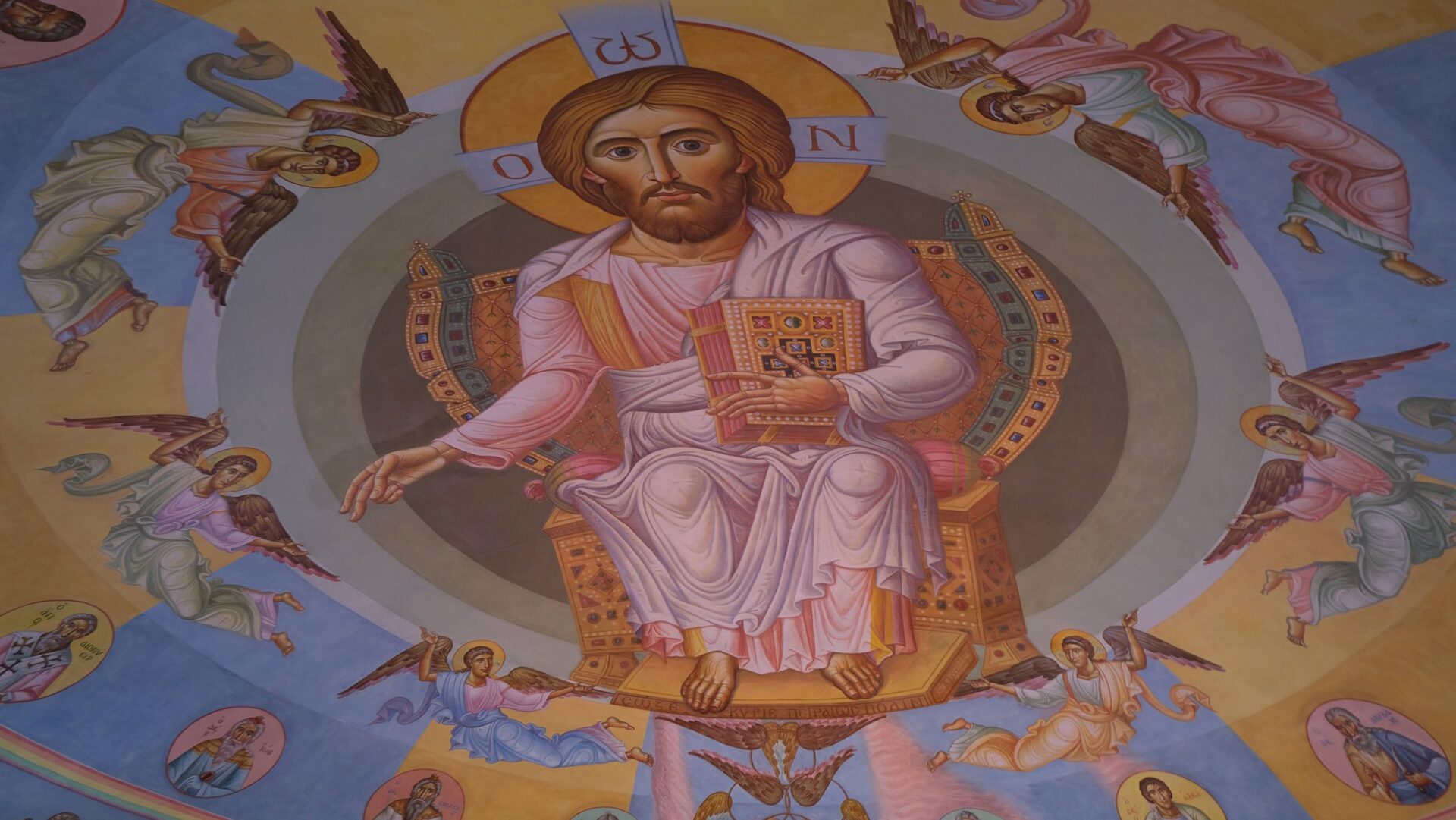 Το έργο παρουσιάζει τον Παντοκράτορα πλαισιωμένο από πλήθος Αγγέλων και Δικαίων συνεχίζοντας με Αγιογραφικές Ζώνες στα διάκενα των παραθύρων του τρούλου, όπου και εικονίζονται πρόσωπα όπως Προφήτες, Σοφοί των Ελλήνων, Βυζαντινοί Αυτοκράτορες και Λόγιοι Διδάσκαλοι, Ήρωες καθώς και Μάρτυρες του Γένους. Στηρίζοντας τον τρούλο τα οκτώ σφαιρικά τρίγωνα κάτωθεν κοσμούνται με μεγάλα Εξαπτέρυγα από την Αγία του Θεού Σοφία και σύμβολα των Ευαγγελιστών για να καταλήξουν στις τέσσερις ολόσωμες φιγούρες όπου εικονίζονται οι ίδιοι οι Ευαγγελιστές.