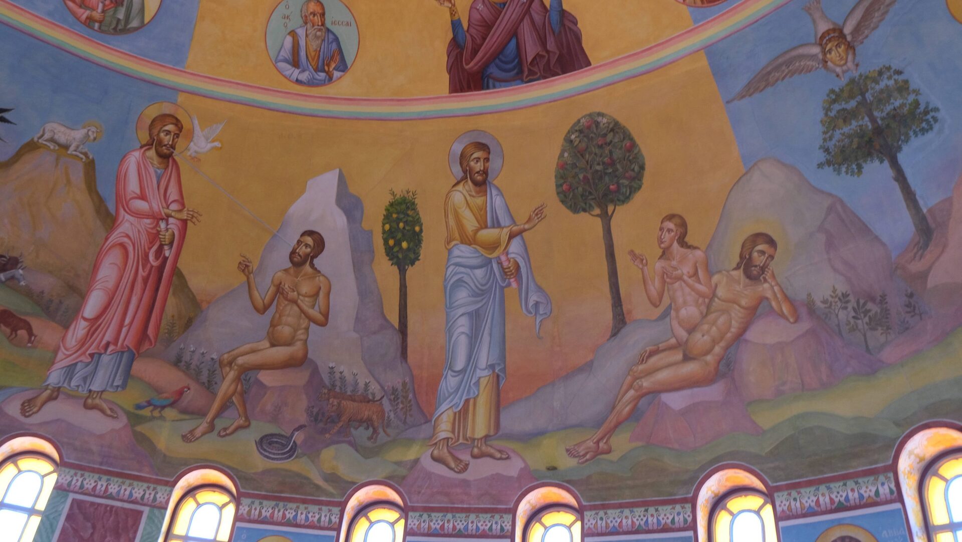 Η δημιουργία του έργου συνέπεσε με την συμπλήρωση 200 ετών από την Ελληνική Επανάσταση αλλά και 100 ετών από την Μικρασιατική Καταστροφή, δίνοντας έτσι στον καλλιτέχνη την ευκαιρία να αντλήσει θεματικές από τα γεγονότα αυτά αναδεικνύοντας τα στη ζωγραφική του, με κυρίαρχα τα μεγάλα αγιογραφικά θέματα του ένθρονου Παντοκράτορα των 8.5 μέτρων, των 11 συνθέσεων της Δημιουργίας του κόσμου, την Παρακοή και την Έξοδο.