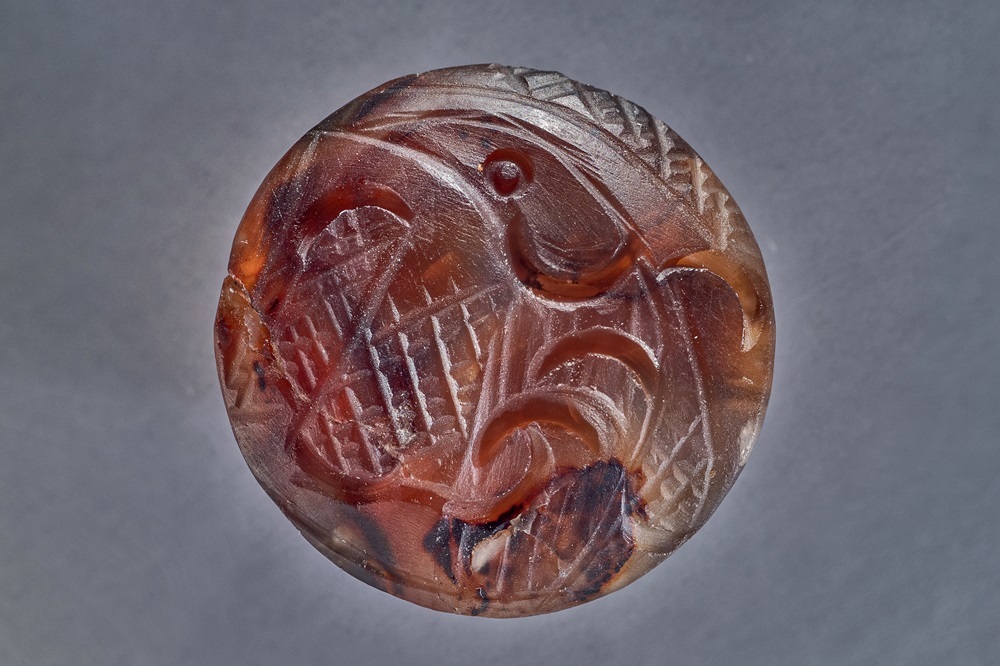 Στο ιερό έχουν βρεθεί ακόμη τμήματα από μικροσκοπικά δείγματα μεγάλων αγγείων, όπως π.χ. από χύτρες, που είναι αφιερωματικά. Ένα ακόμη τελετουργικό εύρημα ήταν ένας θαλάσσιος τρίτωνας, που αποτελούσε όργανο επίκλησης της θεότητας, όπως γνωρίζουμε από σφραγίδα που έχει βρεθεί στο Ιδαίον Άντρο. Θαλάσσια βότσαλα μεγαλύτερου μεγέθους, που συμβολίζουν τη θαλάσσια υπόσταση της θεότητας και τη χρήση τους γνωρίζουμε από την Κνωσό, βρέθηκαν λίγο μακρύτερα (χώρος 37). Τα βότσαλα αυτά συλλέχθηκαν διασπαρμένα κοντά σε έναν εξαίρετο σφραγιδόλιθο από αχάτη με παράσταση ψαριού, που βρέθηκε στον διπλανό χώρο (34). Το ιερό, όπως συμβαίνει συχνά, δεν χρησιμοποιήθηκε ξανά στα μινωικά χρόνια, σημειώνει, μεταξύ άλλων, η ανακοίνωση του ΥΠΠΟ που αναφέρει πολλά σημαντικά στοιχεία από τις νέες έρευνες.
