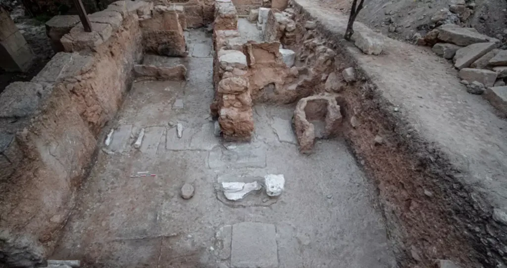 Από την ανασκαφή του 2023 φάνηκε ότι η φωτιά, προήλθε από έναν χώρο ανωτέρου ορόφου. Παχύ στρώμα στάχτης και καμένου ξύλου βρέθηκε κυρίως στο ΒΑ τμήμα και έφθασε μέχρι το δάπεδο. Από το σημείο αυτό ίσως εξαπλώθηκε η φωτιά. Στη γωνία αυτή του ανασκαφέντος χώρου θα υπήρχε ιερό, όπως δείχνουν τα λίγα διασωθέντα θραύσματα από λίθινα αγγεία: ένα από ορεία κρύσταλλο, ένα από γκρίζο/λευκόλιθο, ένα από εγχάρακτο στεατίτη, καθώς και τμήματα οψιανού. Πρέπει να σημειωθεί, ότι ο οψιανός δεν είναι σύνηθες εργαλείο στην εποχή αυτή (ΥΜΙ περίοδο, περί το 1600 π. Χ.). Το πλήθος των οψιανών επομένως, που βρίσκεται εδώ έχει μάλλον τελετουργικό/ μαγικό χαρακτήρα.