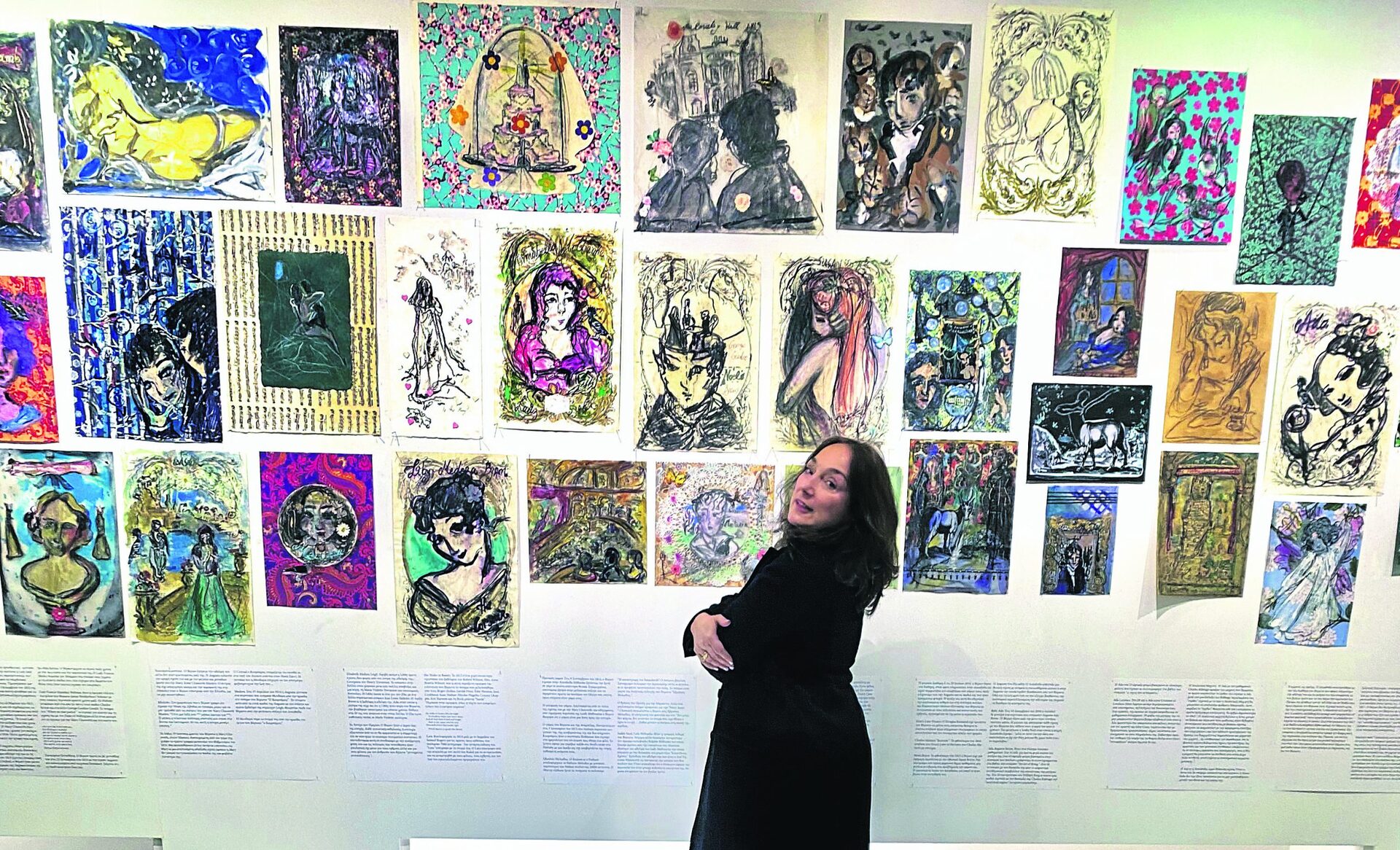 Βρεθήκαμε στην Πινακοθήκη του Δήμου Αθηναίων και είχαμε τη χαρά να μας ξεναγήσει η ίδια η Λυδία Βενιέρη στο έργο της. Παθιασμένη με τη δουλειά της, πολυπρισματική όσο και ακτινοβόλα προσωπικότητα, με τον λόρδο Βύρωνα να έχει κατακτήσει κάθε κύτταρό της, η διεθνής αυτή εικαστικός που ζει στη Νέα Υόρκη, αλλά παραμένει βαθιά Ελληνίδα, είναι πληθωρική στις εκφράσεις, στις σκέψεις, στα συναισθήματα.