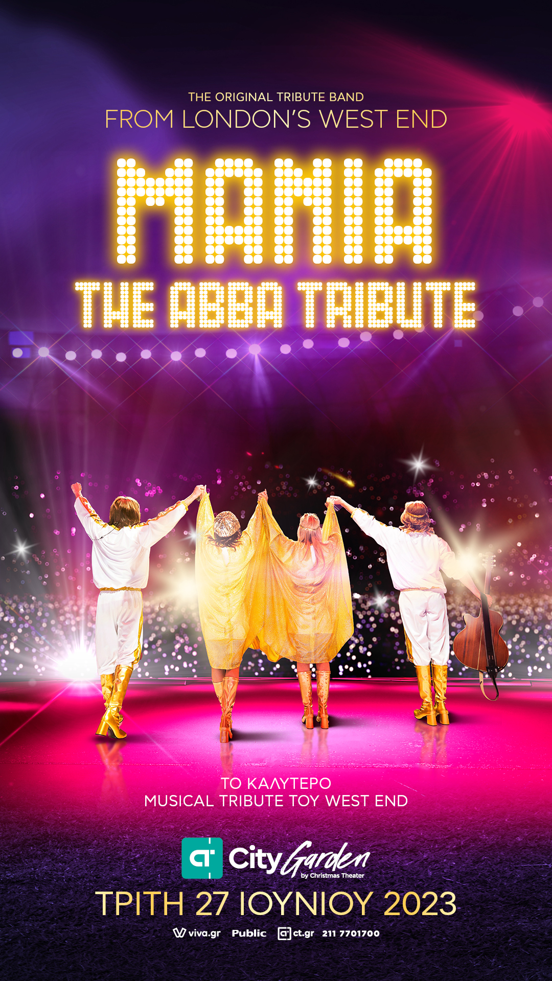 Η κορυφαία παραγωγή MANIA THE ABBA TRIBUTE, που αναβιώνει με τον πιο πιστό τρόπο τη δύναμη και την ομορφιά της μουσικής των Abba, καθώς και την εκρηκτική σκηνική τους ενέργεια, παρουσιάζεται από το 1999 συνεχώς σε όλο τον κόσμο. Με πάνω από 3 εκατομμύρια θεατές σε πάνω από 30 χώρες συνεχίζει τις περιοδείες και έρχεται στην Αθήνα για μια ακόμα φορά. Αυτή η θρυλική παραγωγή έχει ήδη χαρίσει δύο αξέχαστες βραδιές στο Αθηναϊκό κοινό και έχει καταγράψει δύο συνεχόμενα sold out λικνίζοντας στους ρυθμούς τους μικρούς και μεγάλους.