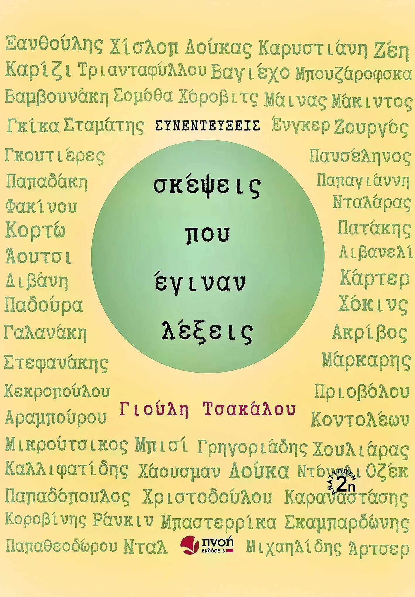 Με τις 65 αυτές συνεντεύξεις -που πρέπει να πούμε πως αποτελούν μια επιλογή από πολύ περισσότερες- η Γιούλη Τσακάλου δημιούργησε αυτό το βιβλίο και μέσω των εκδόσεων Πνοή το έστειλε στα βιβλιοπωλεία.