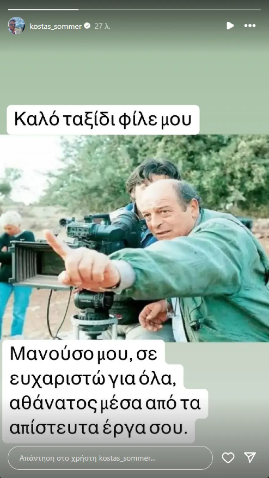 Το δικό του αντίο είπε ο Κώστας Σόμμερ στον Μανούσο Μανουσάκη με μία ανάρτησή του στα social media.