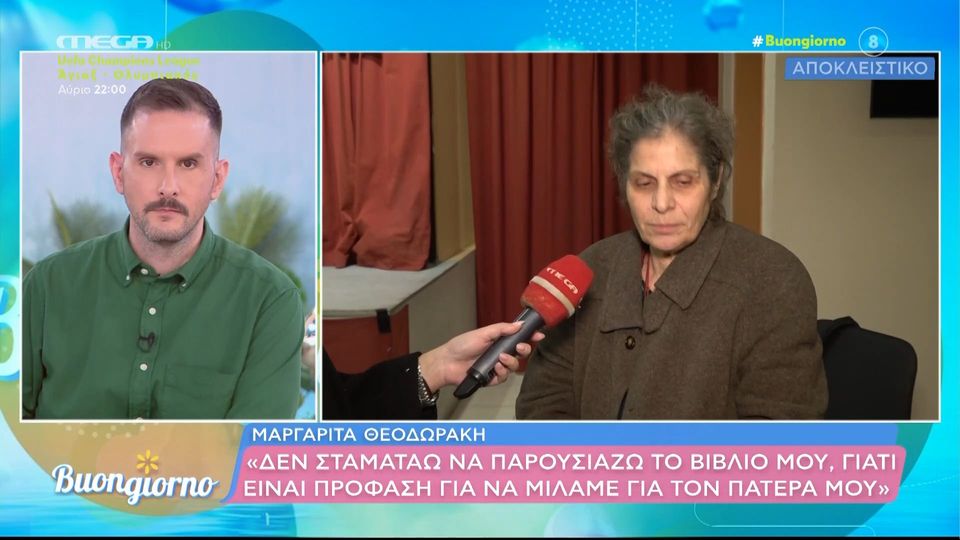 «Παρουσιάζω το βιβλίο μου, αλλά στην ουσία μιλώ για τον πατέρα μου», είπε η ίδια στο τηλεοπτικό πρόγραμμα Buongiorno την Τρίτη 27 Ιανουαρίου. «Οι αναμνήσεις είναι θυελλώδεις, γιατί όταν ήμουν 7-9 χρονών ζούσαμε την εποχή της δικτατορίας. Ο πατέρας μου κυνηγούταν επειδή αντιστεκόταν. Ήμουν ένα κοριτσάκι ανάμεσα σε εξορίες, στρατόπεδα και φυλακές, αλλά πάντα με αισιοδοξία, γιατί είχα τη μαμά μου και τον μπαμπά μου, που με αγαπούσαν».