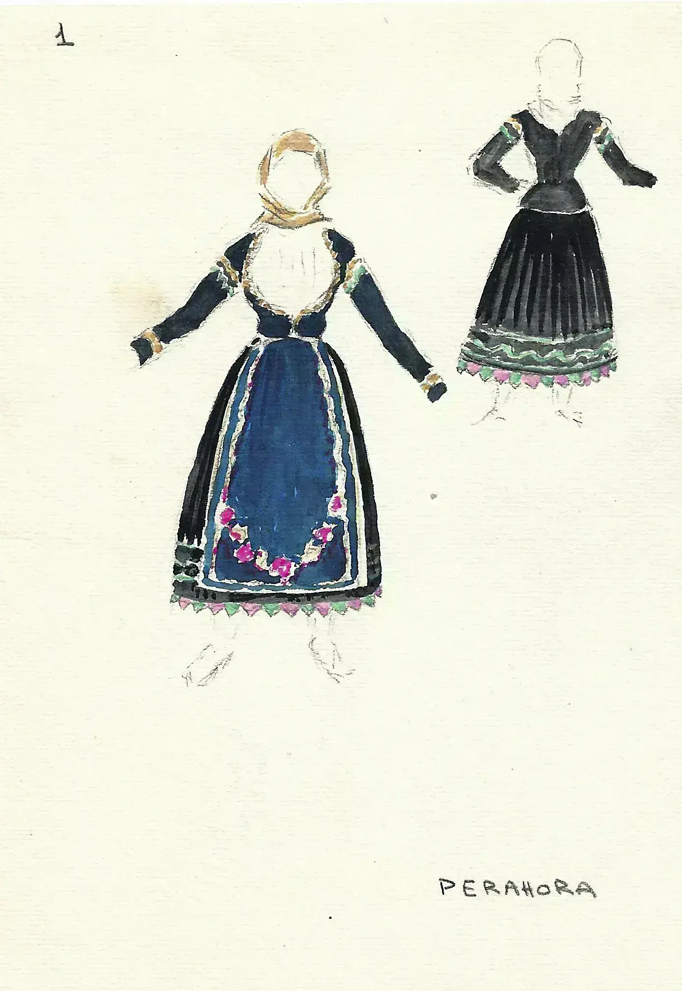 Στην έκθεση συναντάμε έργα τέχνης, προσωπογραφίες και τοπία, σχέδια, μακέτες και φωτογραφίες από τις συνεργασίες της με θιασάρχες όπως με τους Μάνο Κατράκη, Ελλη Λαμπέτη, Δημήτρη Χορν, Λυκούργο Καλλέργη, Λάμπρο Κωνσταντάρα, Αννα Συνοδινού, Μαίρη Αρώνη, αλλά και με σκηνοθέτες όπως με τους Μιχάλη Κακογιάννη, Αλέξη Σολομό, Δημήτρη Μυράτ και άλλες προσωπικότητες που καθόρισαν εκείνη την εποχή την καλλιτεχνική ζωή της χώρας. Την επιμέλεια της έκθεσης συνυπογράφουν οι Σπύρος Μοσχονάς και Κωνσταντίνα Ντακόλια.