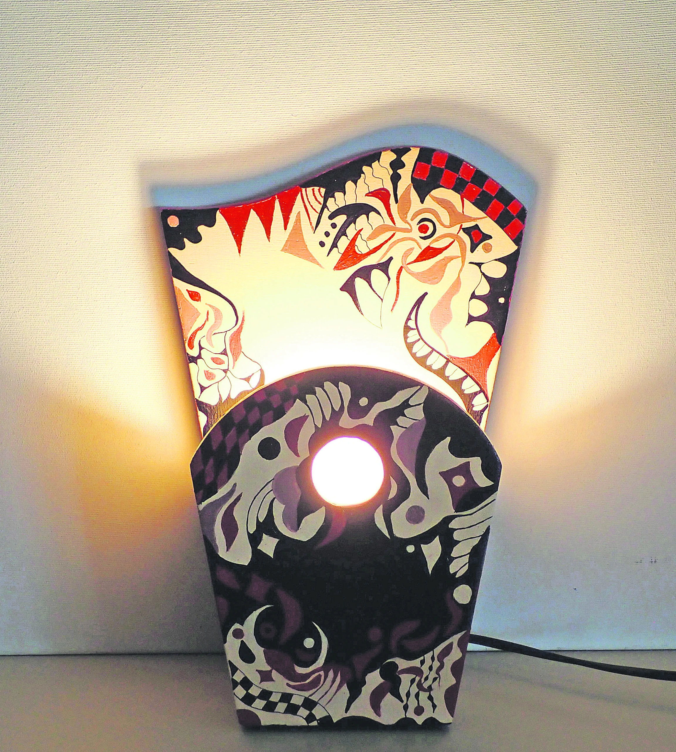 Πάντα με ενδιέφερε η εφαρμοσμένη τέχνη που γεννήθηκε με την Art Nouveau. Στην τωρινή μου έκθεση, έχω σχεδιάσει τα αντικείμενα και ο καλλιτέχνης Ζάχος Τσάλας έχει αναλάβει την κατασκευή τους με κόντρα πλακέ θαλάσσης και λαμαρίνα. Κατόπιν τα έχω ζωγραφίσει, ώστε το κάθε αντικείμενο να αποτελεί μοναδικό έργο τέχνης. Ο χρόνος και η αναζήτηση του φωτός, όντως, με απασχολούν. Ο χρόνος είναι η μόνιμη συντροφιά μας, επιθυμητή ή όχι, και το φως είναι το αναγκαίο στοιχείο για κάθε τέχνη.