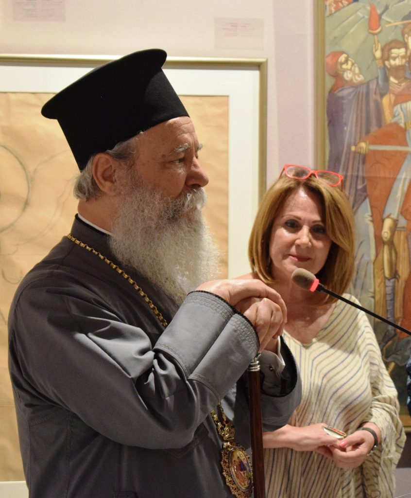 Το κοινό καλωσόρισε στην έκθεση η διευθύντρια του Ιστορικού Αρχείου Μουσείου Ύδρας κ. Ντίνα Αδαμοπούλου, παρόντος του σεβασμιότατου Μητροπολίτη Ύδρας, Σπετσών, Αιγίνης κ. Εφραίμ, που απηύθυνε χαιρετισμό, καθώς και του δημάρχου του νησιού κ. Γιώργου Κουκουδάκη, που επίσης μίλησε για το πνεύμα της έκθεσης. Στα εγκαίνια παραβρέθηκαν επίσης πολλοί φιλότεχνοι, ανάμεσα στους οποίους και ο συλλέκτης κ. Χρήστος Μαργαρίτης, ο τραγουδιστής Δώρος Δημοσθένους, που ξεναγήθηκαν στα έργα της έκθεσης από τις δυο επιμελήτριες την κ. Ανδρομάχη Κατσελάκη, Δρ Αρχαιολογίας, ΜΑ Ιστορίας Τέχνης και κ. Μαρία Νάνου ΜΑ Ιστορίας Βυζαντινής Τέχνης. Με θερμά και συγκινητικά λόγια, ανασύροντας μνήμες, μίλησε και ο εγγονός του Φώτη Κόντογλου κ. Φώτης Μαρτίνος, στον οποίο αργότερα η διευθύντρια του Μουσείου δώρισε ένα αντίγραφο της ορειχάλκινης ρωσικής αυτοκρατορικής βούλας.