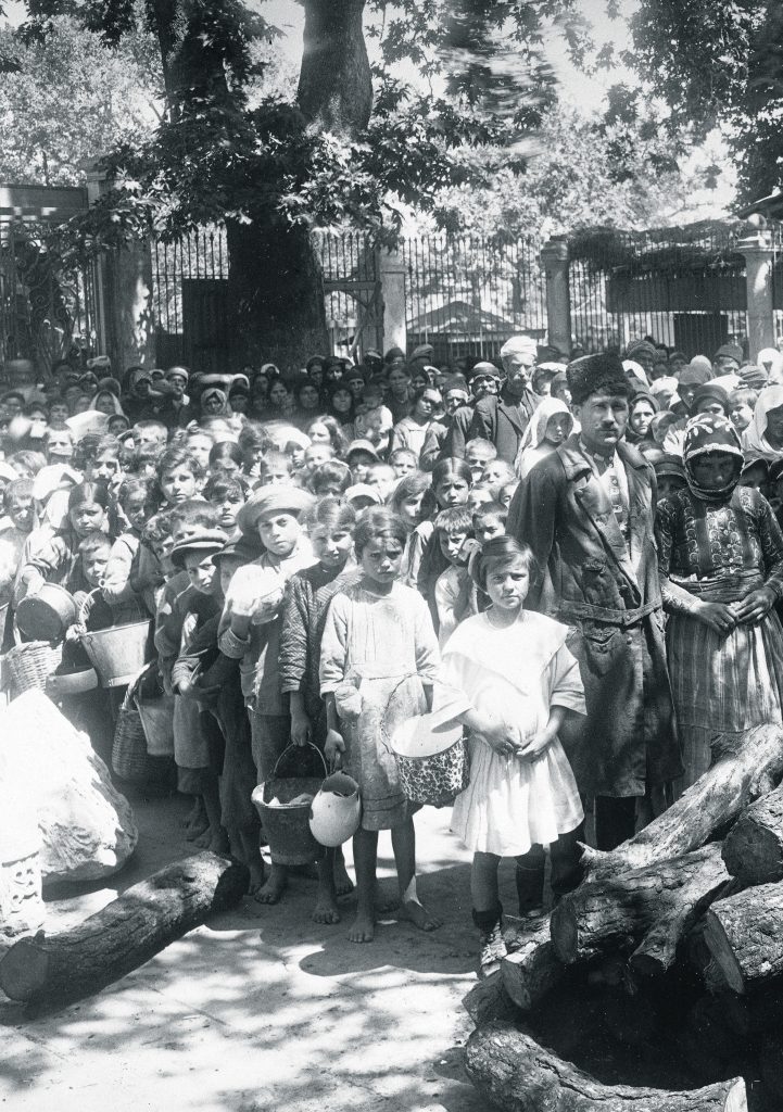 Στιγμιότυπα από τα συσσίτια του ’22, γυναικόπαιδα με δοχεία στα χέρια περιμένουν καρτερικά. Πρόκειται για τρεις από τις πενήντα χαρακτηριστικές αλλά και σπάνιες φωτογραφικές αποτυπώσεις που παρουσιάζονται στην έκθεση «Η αττική γη υποδέχεται τους πρόσφυγες του ’22» του Ιδρύματος της Βουλής των Ελλήνων για τον Κοινοβουλευτισμό και τη Δημοκρατία στον Ιερό Ναό Αγίου Γεωργίου στο Νέο Ψυχικό από αύριο 30 Σεπτεμβρίου έως και τις 2 Οκτωβρίου.