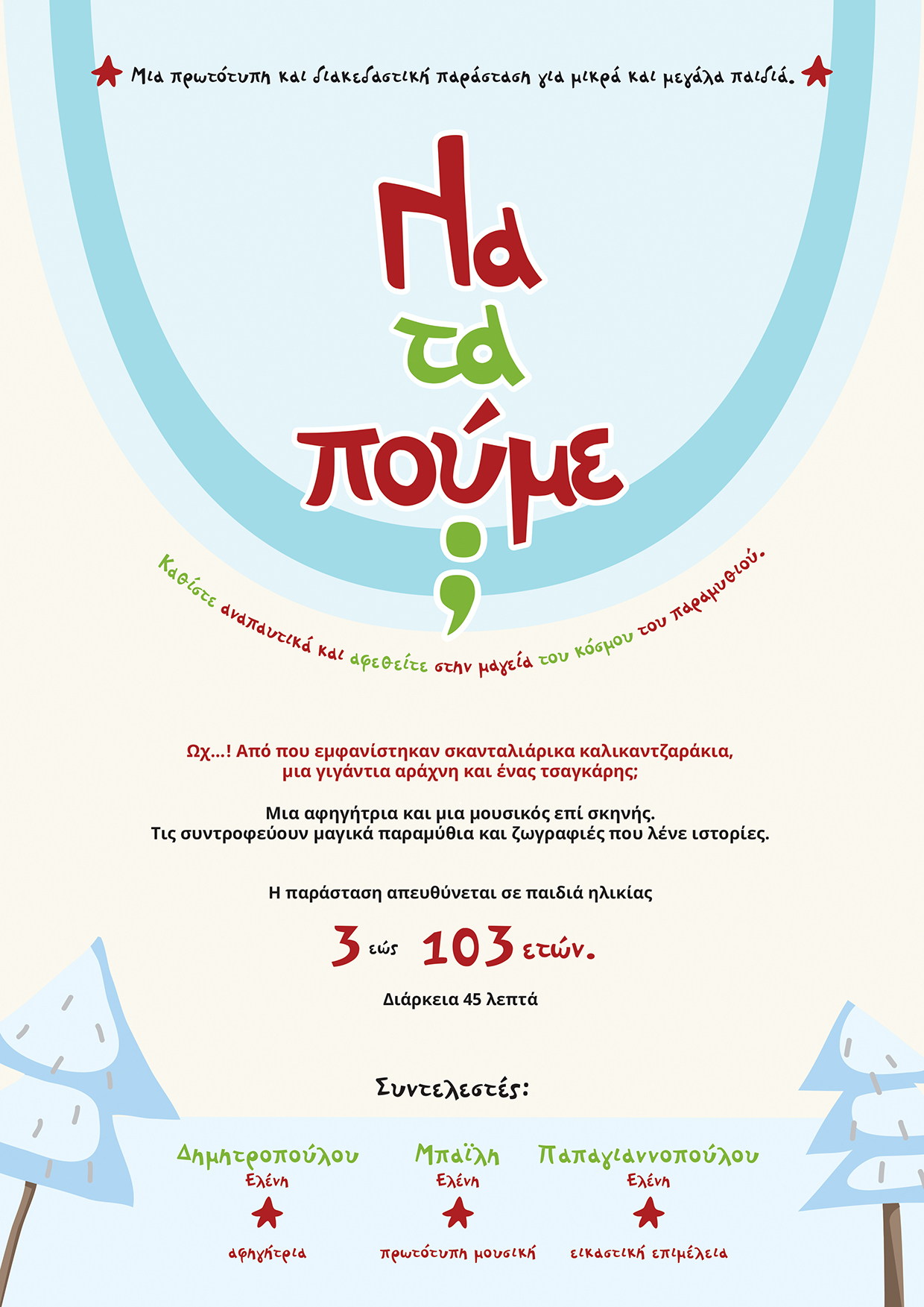 Όταν το ρολόι χτυπήσει μεσάνυχτα το μυστήριο θα αποκαλυφθεί. Ελάτε να ταξιδέψουμε μαζί στο μαγικό κόσμο των παραμυθιών.