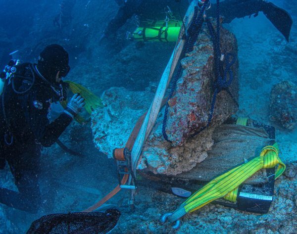 Η αποστολή ξεκίνησε με την ανέλκυση ογκωδών βράχων βάρους πολλών τόνων, οι οποίοι κάλυπταν τμήμα του ναυαγίου.