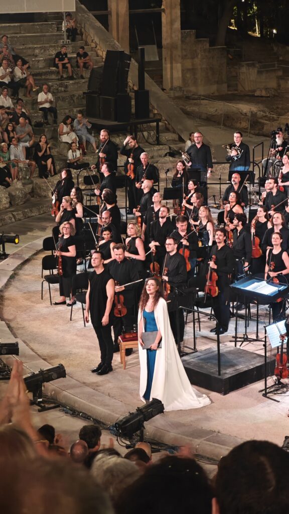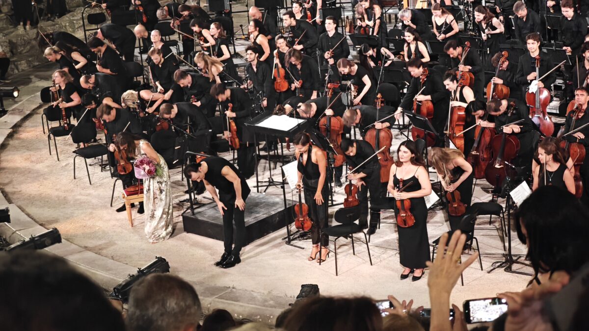 Ο εκκεντρικός μαέστρος βγήκε στη σκηνή της Επιδαύρου με εμφάνιση ροκ σταρ. Αμάνικη μαύρη μπλούζα, που άφηνε ακάλυπτα τα μακριά του χέρια και μαύρο κολλητό παντελόνι με μυτερά παπούτσια, εξαιρετικά κομψός για να οδηγήσει την ανεξάρτητη ορχήστρα του Utopia που ίδρυσε το 2022 σε μια λαμπρή εκτέλεση της Τέταρτης συμφωνίας του Μάλερ, τη δημοφιλέστερη του Αυστριακού μουσουργού. Όλο το πρόγραμμα της βραδιάς είχε αποκλειστικά έργα Μάλερ, όχι εύκολα στην ακρόασή τους, αλλά εξαιρετικής μελωδικής γραμμής, έργα που απαιτούν μια μουσική εκπαίδευση και εξοικείωση.