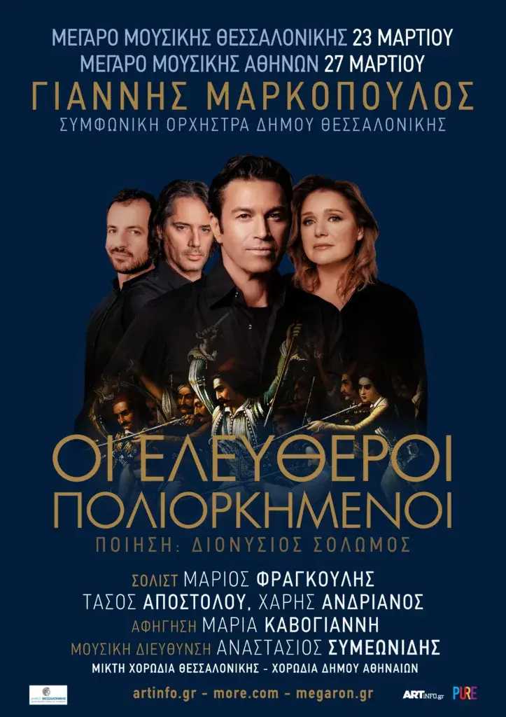 Πρόκειται για τις πρώτες παραστάσεις με τη μουσική του Γιάννη Μαρκόπουλου που ανεβαίνουν επί σκηνής μετά την απώλεια του. Οι μουσικές παραστάσεις θα προβληθούν στο Μέγαρο Μουσικής Θεσσαλονίκης το Σάββατο 23 Μαρτίου και στο Μέγαρο Μουσικής Αθηνών την Τετάρτη 27 Μαρτίου. Σολίστ του έργου είναι οι Μάριος Φραγκούλης, Τάσος Αποστόλου και Χάρης Ανδριανός, και αφηγήτρια η Μαρία Καβογιάννη.