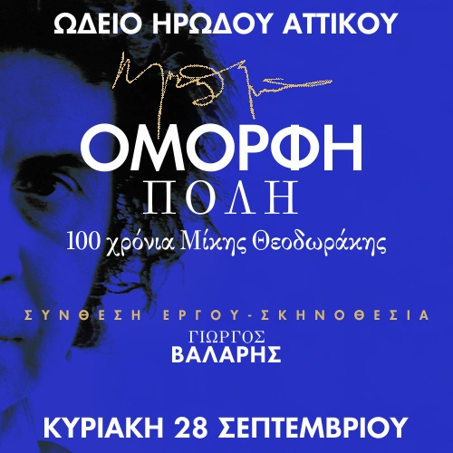 Η παράσταση «Όμορφη Πόλη – 100 Χρόνια Μίκης Θεοδωράκης» είναι ένας επαναπροσδιορισμός της συλλογικής μας μνήμης μέσα από τη μουσική και την ποίηση του μεγάλου μας μουσουργού.