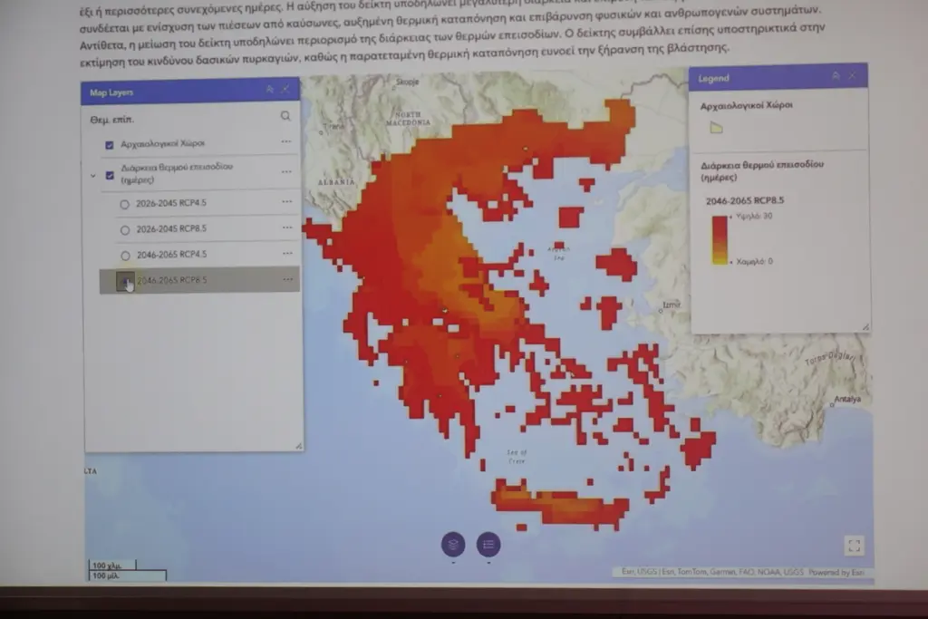 Στην εκδήλωση, ο καθηγητής του ΕΚΠΑ Κωνσταντίνος Καρτάλης παρουσίασε το Σχέδιο για την προσαρμογή των αρχαιολογικών χώρων και μνημείων στις επιπτώσεις της κλιματικής αλλαγής, ενώ ακολούθησαν τοποθετήσεις κι άλλων ειδικών.