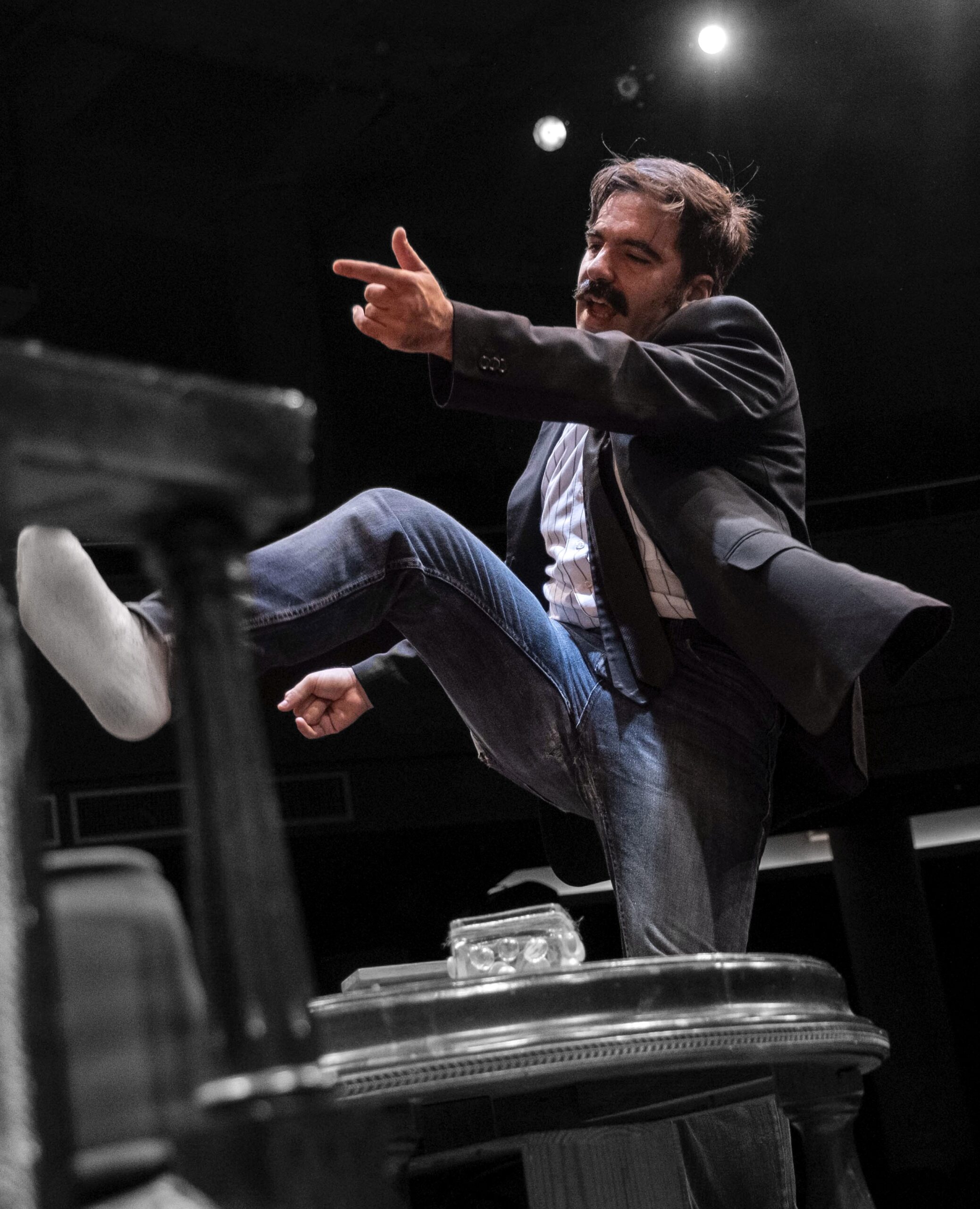 Στο θέατρο δεν υπάρχουν κοντινά και γενικά πλάνα, το μοντάζ το κάνει ο θεατής με τα μάτια του, ανάλογα με το πού εστιάζει. Και, αναπόφευκτα, το μάτι του θεατή δεν μπορεί να αγνοήσει τον ρόλο που ενσαρκώνει ο Γιωργής Τσουρής. Είναι ο “ελέφαντας στο δωμάτιο”, ένας χαρακτήρας φαινομενικά αφελής και υπερβολικός, που, ωστόσο, ίσως να είναι πιο ρεαλιστής και γειωμένος απ’ όλους. Ένας άνθρωπος φύσει αισιόδοξος, παρά τις δυσκολίες που του έχει σερβίρει η ζωή.