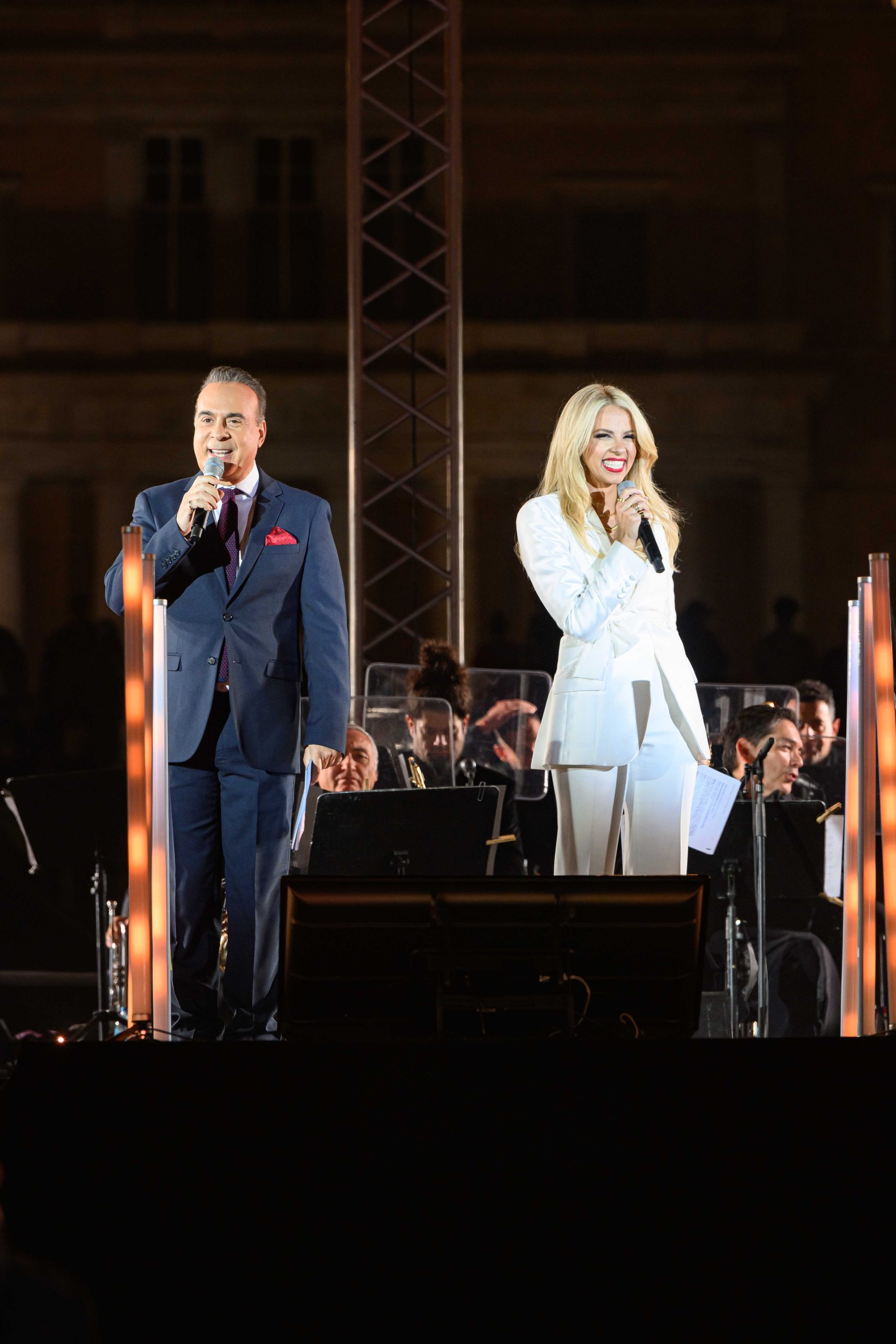 Οικοδεσπότες της βραδιάς, που θα ξεκινήσει στις 22.30 θα είναι ο Φώτης Σεργουλόπουλος και η Τζένη Μελιτά, οι οποίοι συμμετέχουν αφιλοκερδώς στο εορταστικό πρόγραμμα του Δήμου Αθηναίων.
