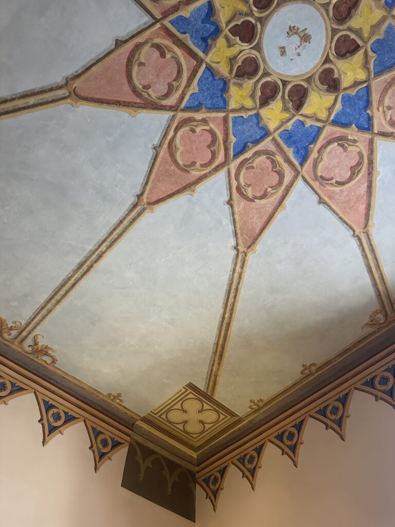 Ο εντυπωσιακός πολυγωνικός Πύργος γοτθικής αρχιτεκτονικής κατασκευάστηκε από το Γάλλο αρχιτέκτονα Boulanger σε πιστή αντιγραφή βαυαρικού κάστρου του Λουδοβίκου, πατέρα του Όθωνα, που ήταν και ο χρηματοδότης του όλου εγχειρήματος. Δυστυχώς, στο εσωτερικό δεν υπάρχουν τα αυθεντικά έπιπλα, αλλά πιστή απομίμησή τους, διότι όπως λέγεται το 1940 οι Γερμανοί έκαψαν όλα τα έπιπλα για να ζεσταθούν.